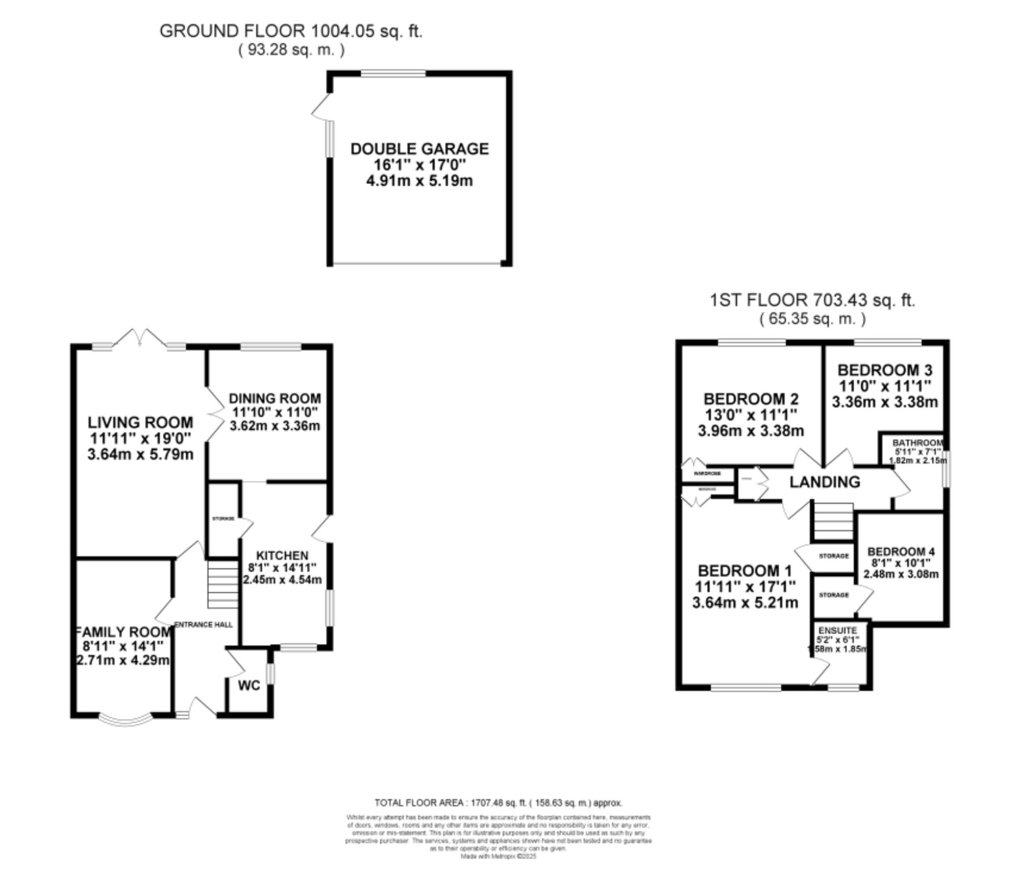 - Upstairs offers an expansive master bedroom with an en suite shower room, plus three further double bedrooms and a family bathroom with a bath, sink, and W/C.