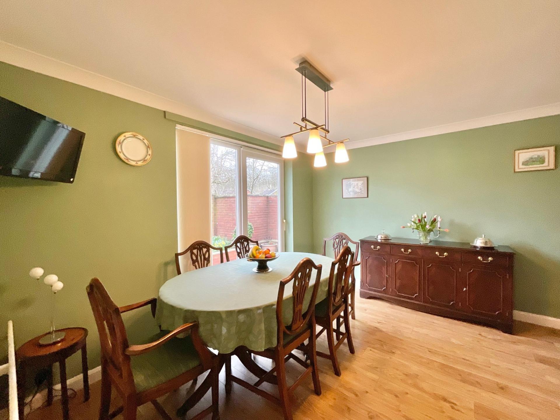 - Bright living room with a recently fitted electric fire and feature fire surround and bay window. Dining room with sliding doors, practical U-shaped kitchen with room for appliances and seamless f...