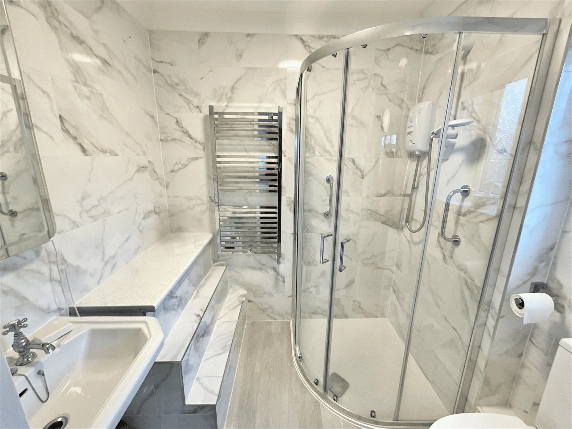 - Four generously sized bedrooms that are perfect for a growing family, including a master bedroom with its own modern en suite shower room with a corner shower. Plus, a family bathroom.