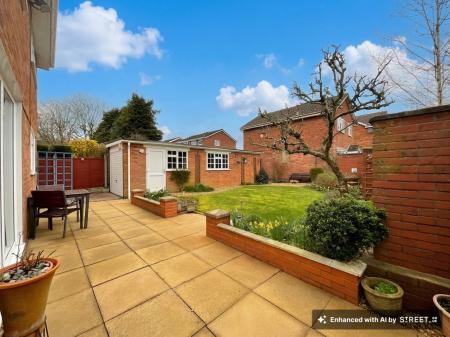 - Well-maintained rear garden with a tidy patio seating space, lush grass lawns, gravelled path and matured plants and shurbbery.