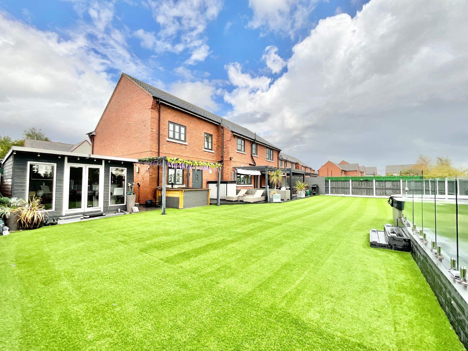 - Outside, a charming rear garden awaits with artificial lawn, decking areas, jacuzzi area, pergolas and a versatile garden room. To the front, a driveway, carport and garage makes parking a breeze.