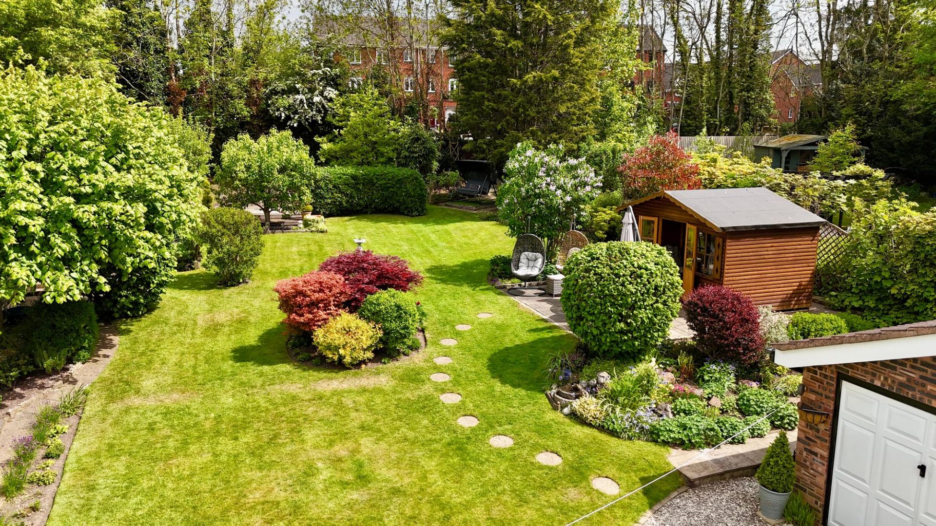 - Set on an impressively large and private plot with multiple seating areas, lawns, a veg patch, and room to grow.