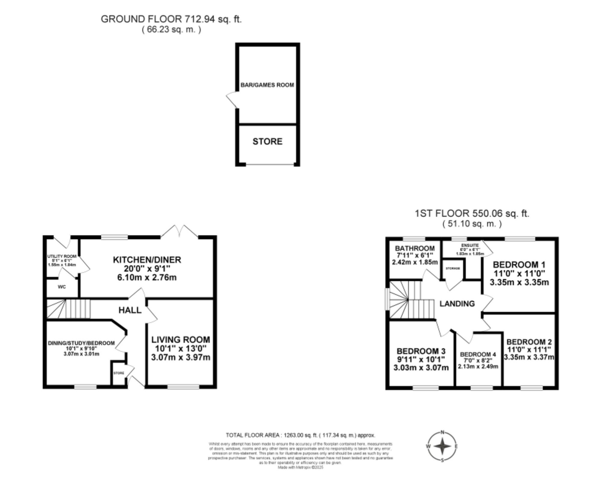 - Converted garage with bar/games room and separate store to the front. While the driveway provides ample off-road parking.