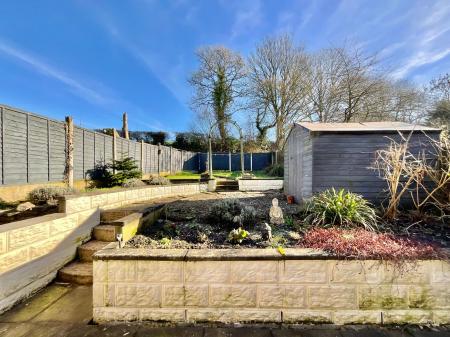 - East-facing tiered rear garden with expansive patio seating space, a lush grass lawn, mature planters and a backs onto stunning green land to the rear with uninterrupted countryside views.