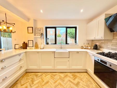 - Open-plan kitchen/dining boasting shaker-style cabinetry, granite worktops, Belfast sink, wine cooler and integrated dishwasher. Spacious living room and convenient utility and W/C.