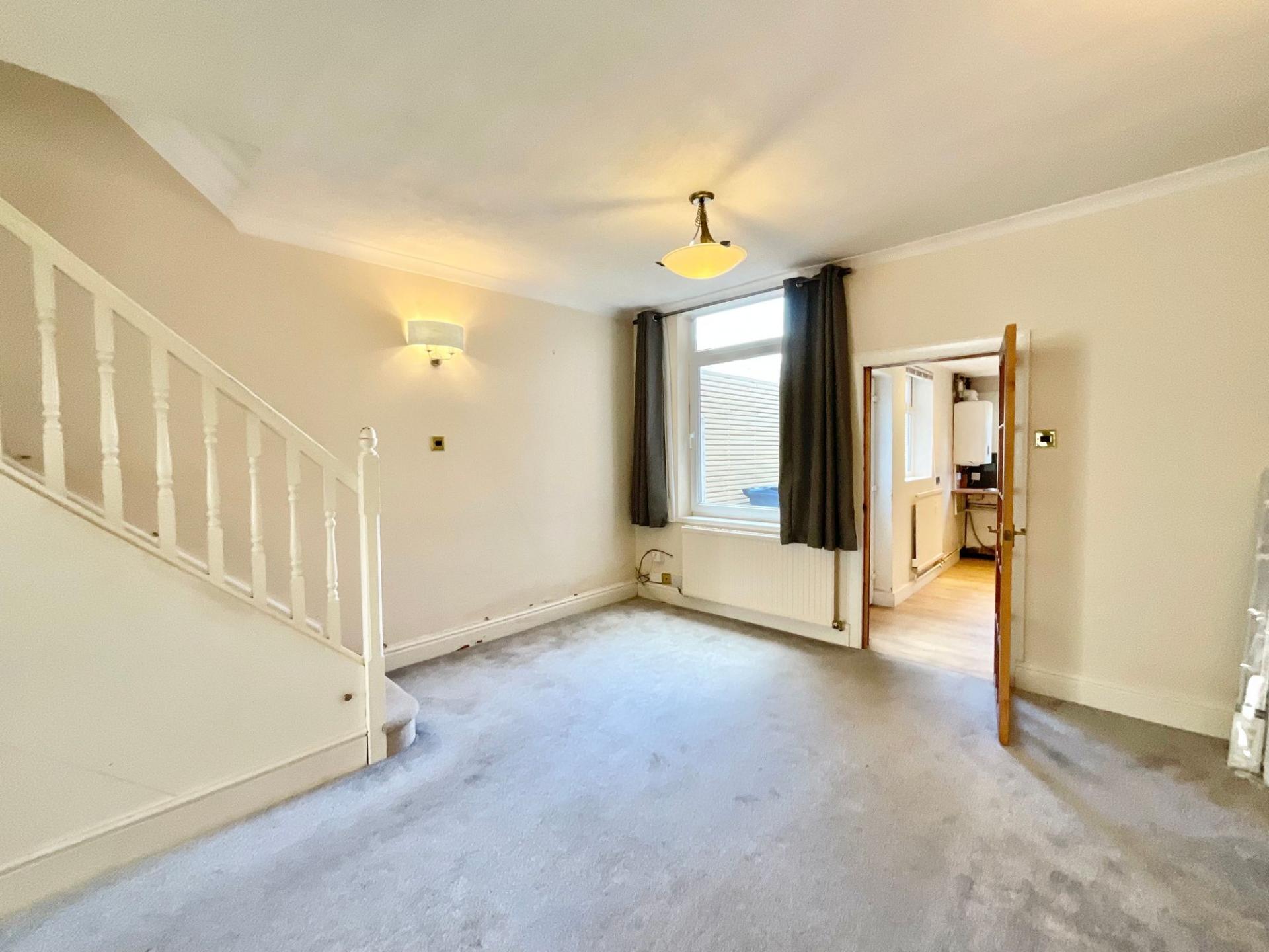 - Rear garden with patio and grass lawn with a side gate giving access to the front of the home with on-street parking.
