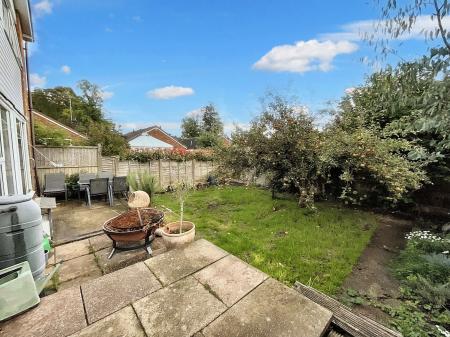 - Lovely South-West facing rear garden with patio seating space, lush grass lawn and a blooming apple tree.