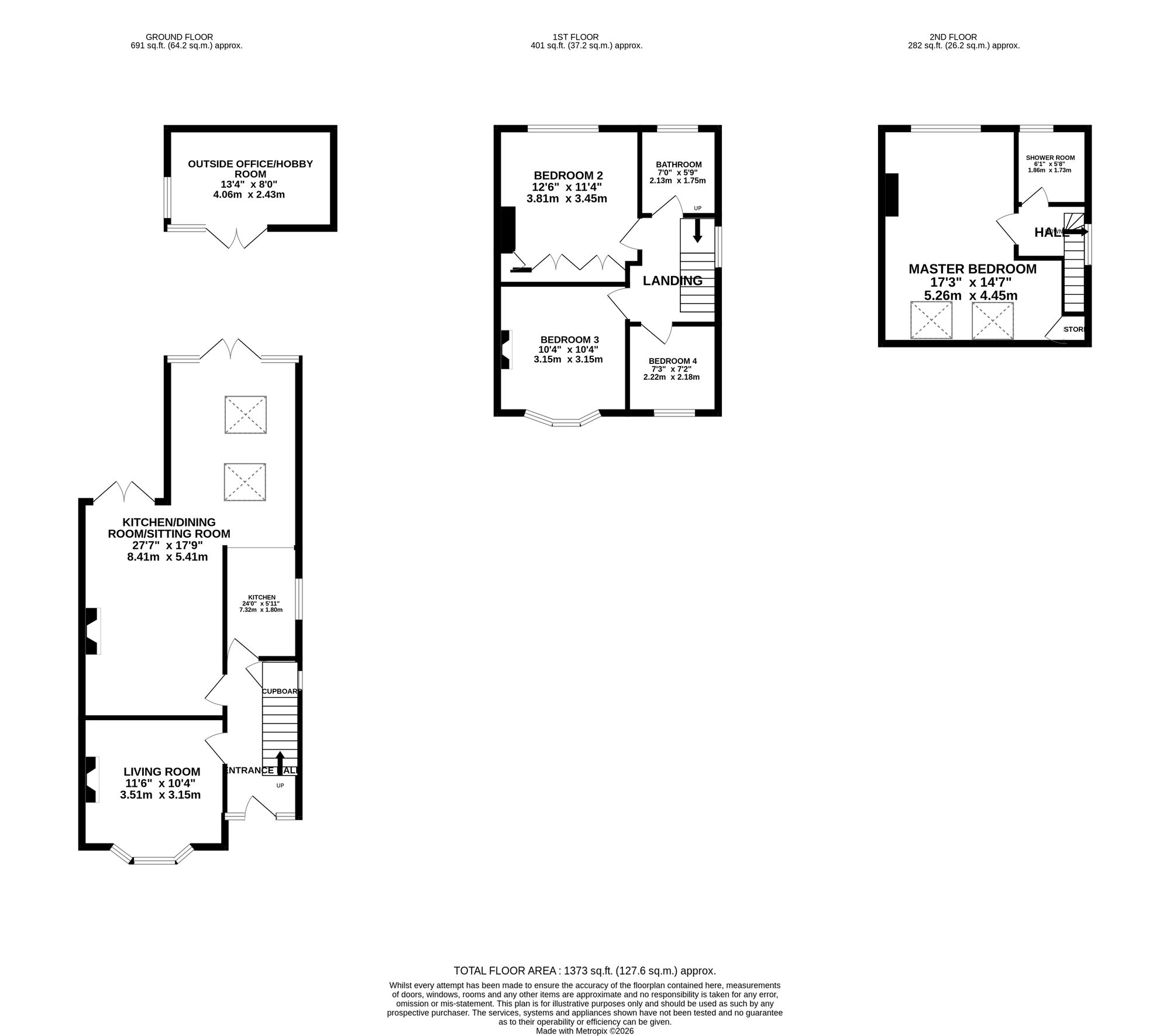 - Set over three floors, this home offers ample living accommodation for all of the family along with having the added extra of a home office/hobby room at the end of the garden!