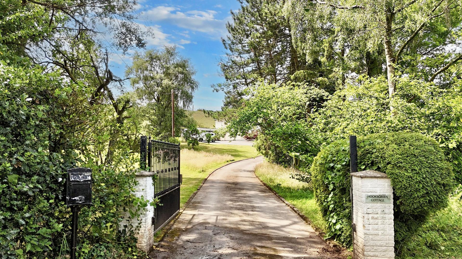 - Private gated access, sprawling driveway, external double garage, lush grass lawns, patio seating areas, and plenty of space for extending.