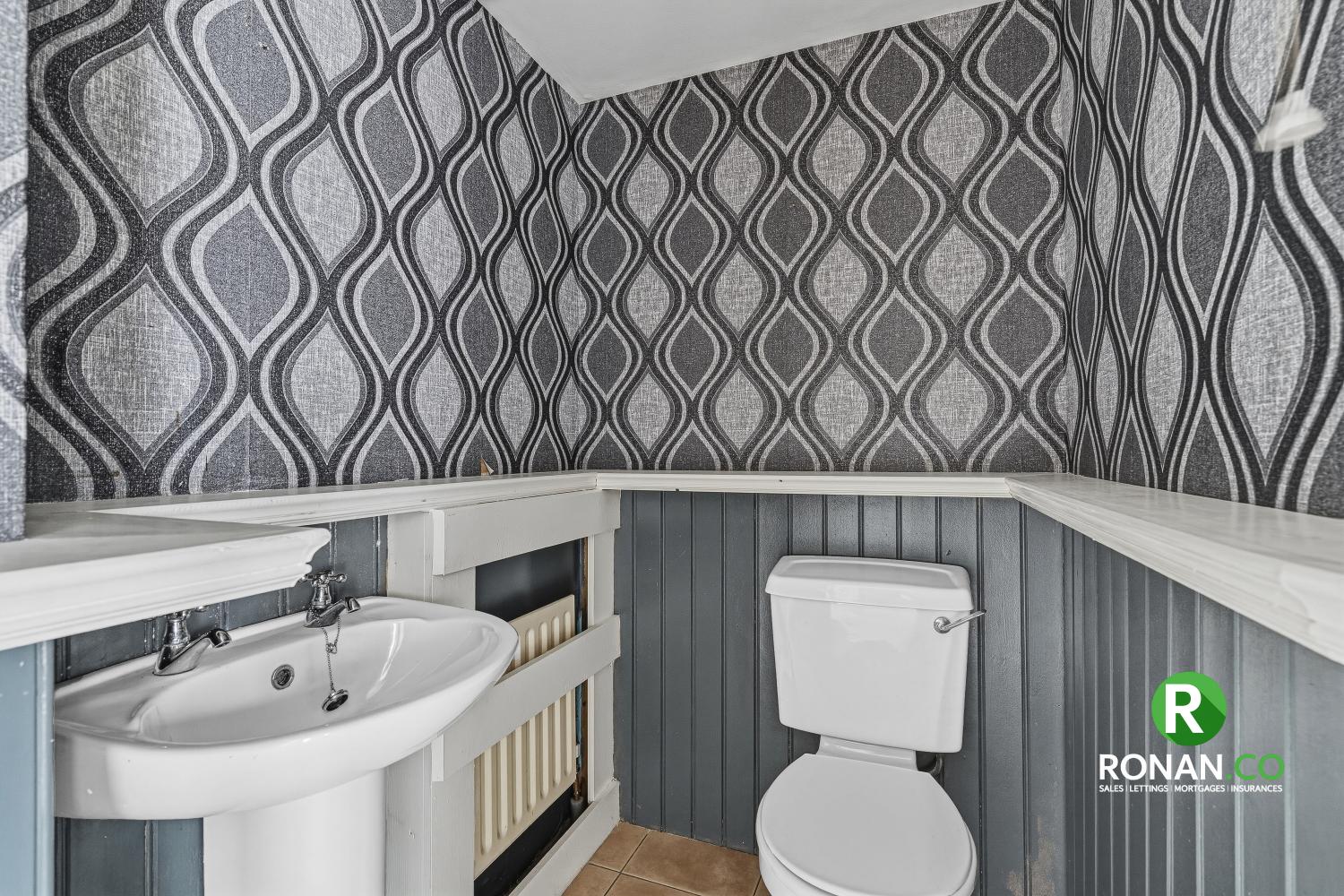 • Tiled Flooring, Partially Tiled Walls, WC, WHB, Electric Shower, Bath, Fan, Single Radiator