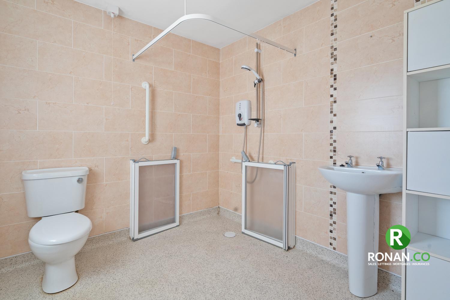 • Lino Flooring, Partially Tiled Walls, WC, WHB, Electric Shower, Single Radiator.