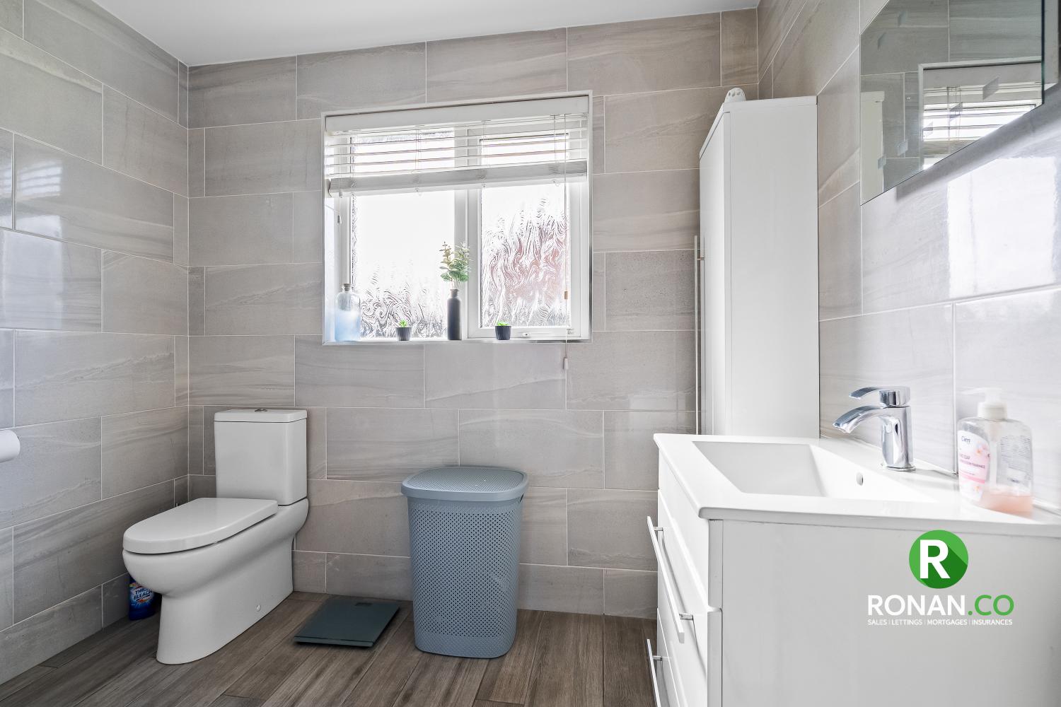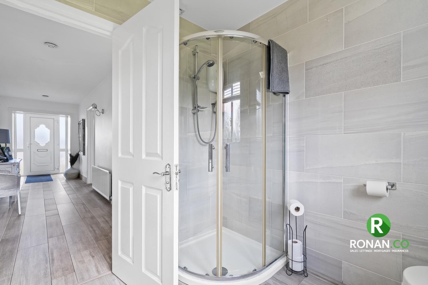 Tiled Flooring, Fully Tiled Walls, WC, WHB, Electric Shower, Vanity Unit, Chrome Towel Rail.