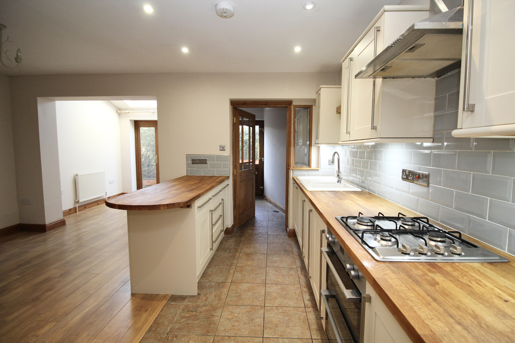- Stylish, well appointed kitchen with fitted wall, base and drawer units, built-in oven and hob, large pantry cupboard, integrated dishwasher and space for a freestanding fridge/freezer.