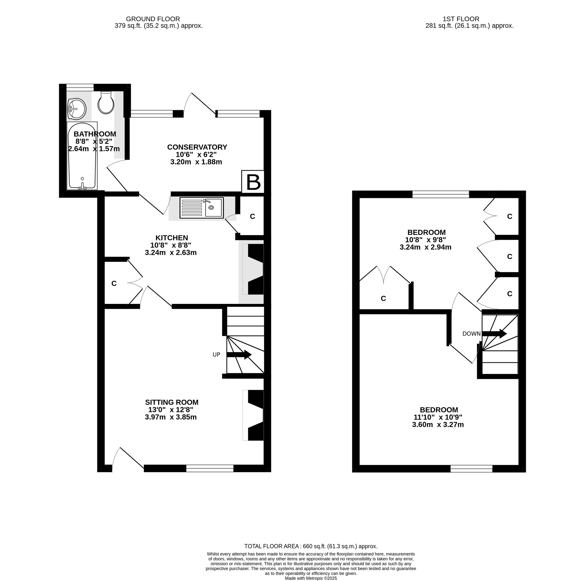 - Two first-floor double bedrooms, both with exposed wooden floors, fitted wardrobes, and attractive front or rear aspects.