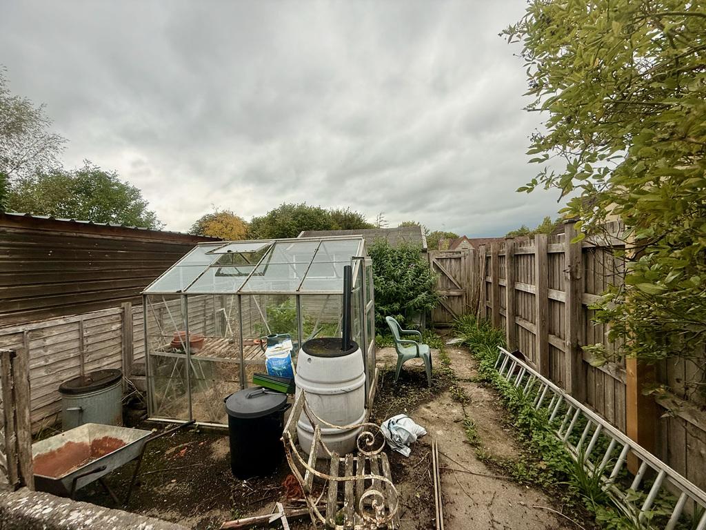 - Extensive rear garden divided into three sections, with patio, lawn, greenhouse, and a variety of fruit trees.