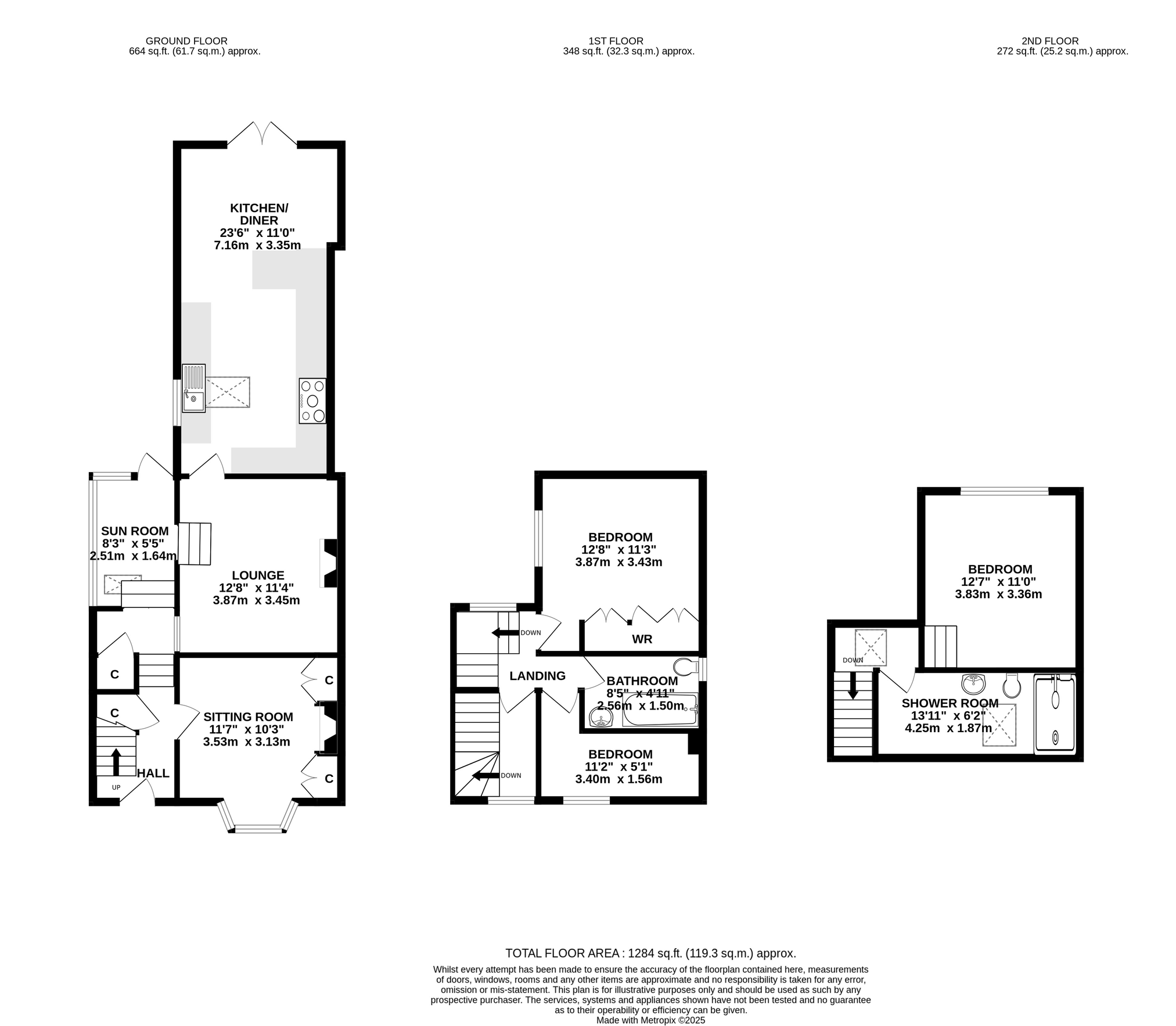 - Arranged over two floors, the home affords three bedrooms, including two well proportioned double bedrooms.