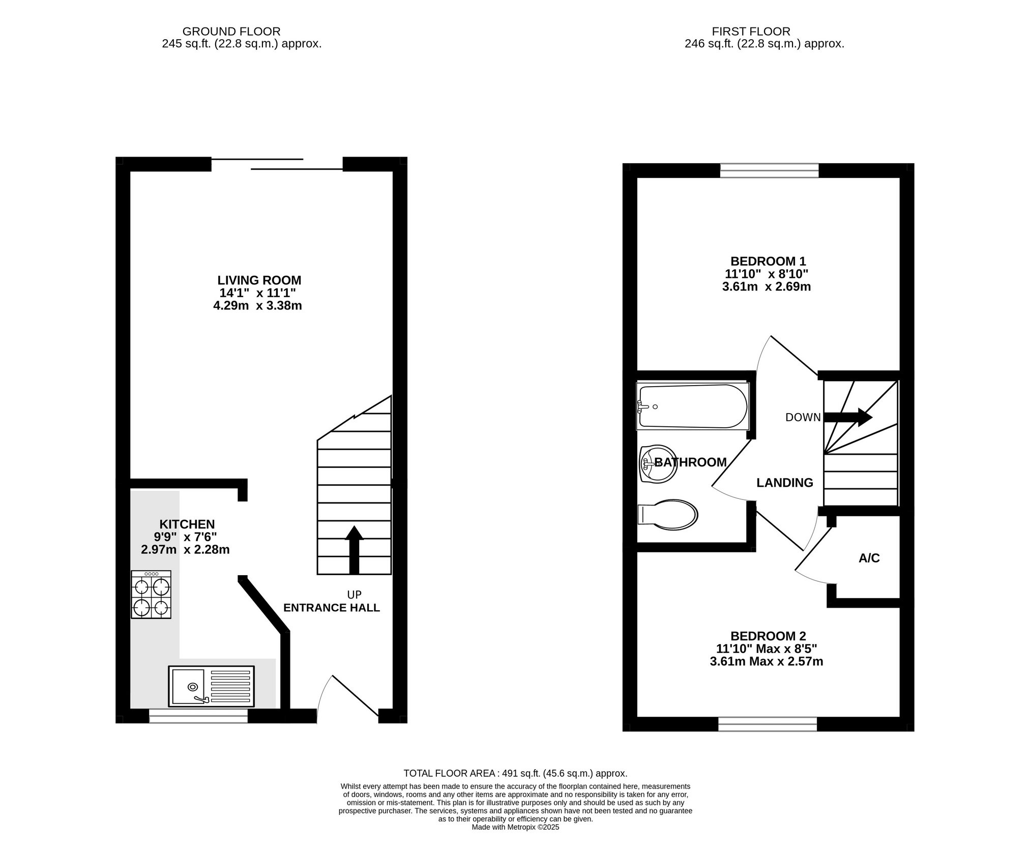- Upstairs, there are two well-proportioned double bedrooms, both enjoying plenty of natural light. One benefits from a built-in cupboard, while the other overlooks the rear garden.