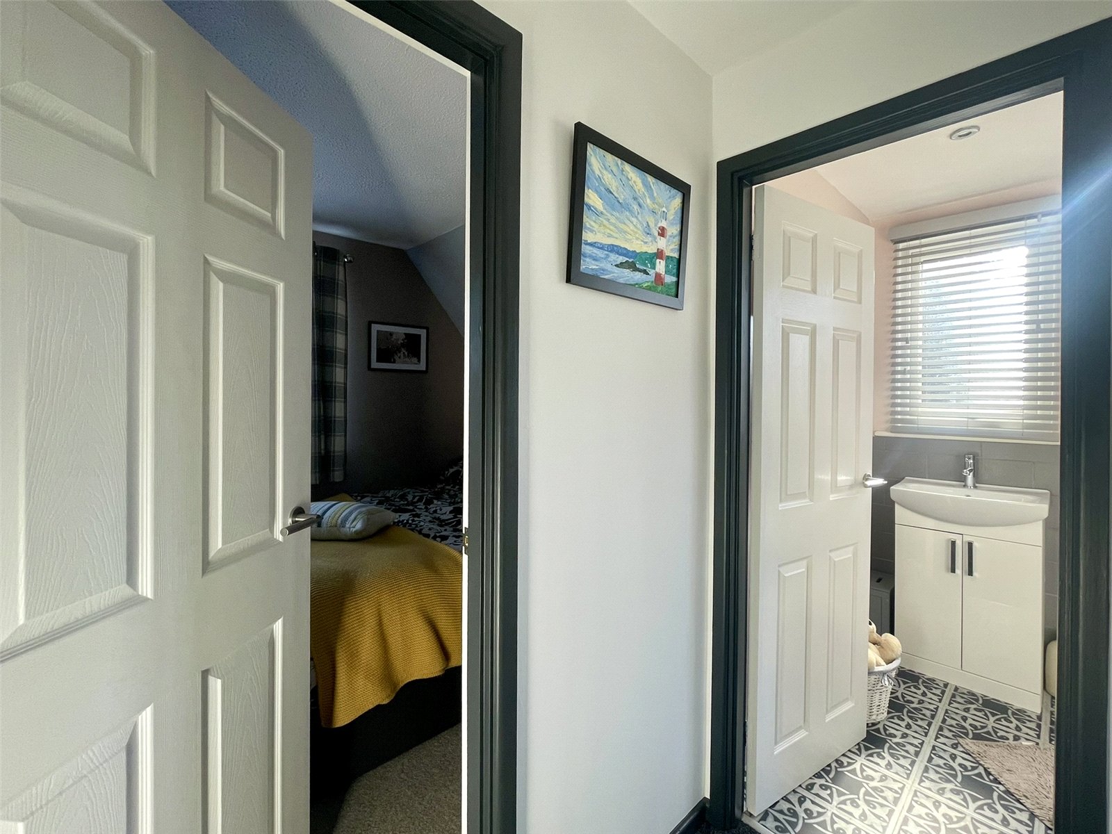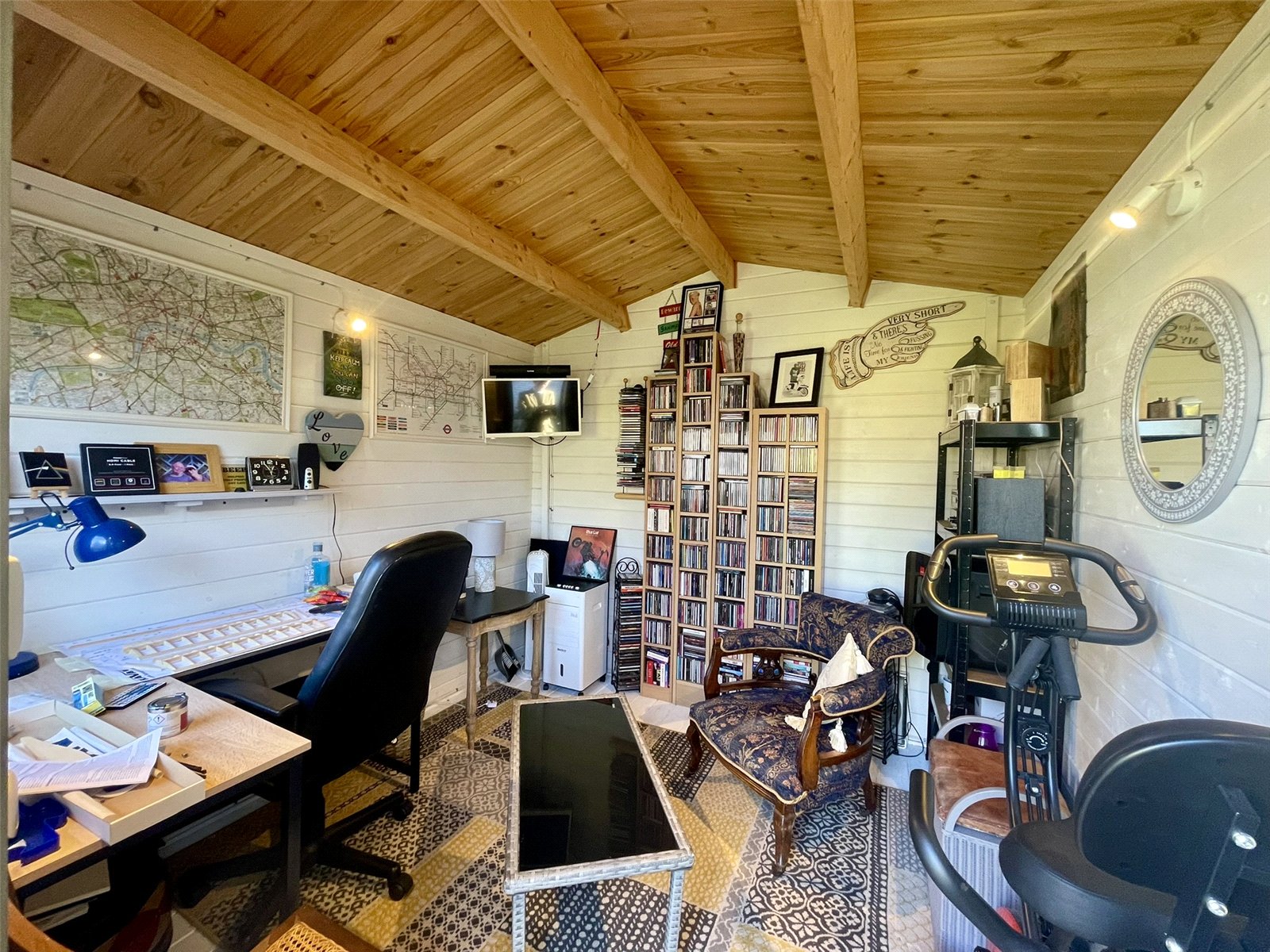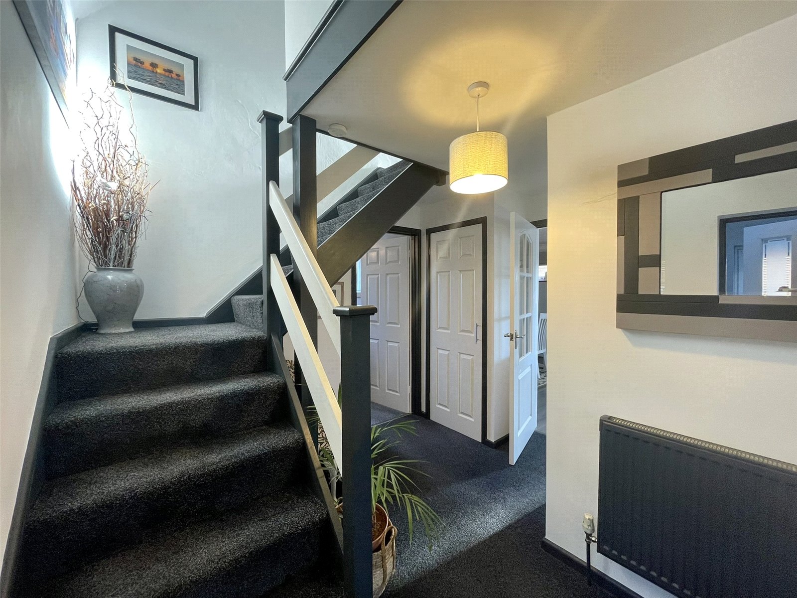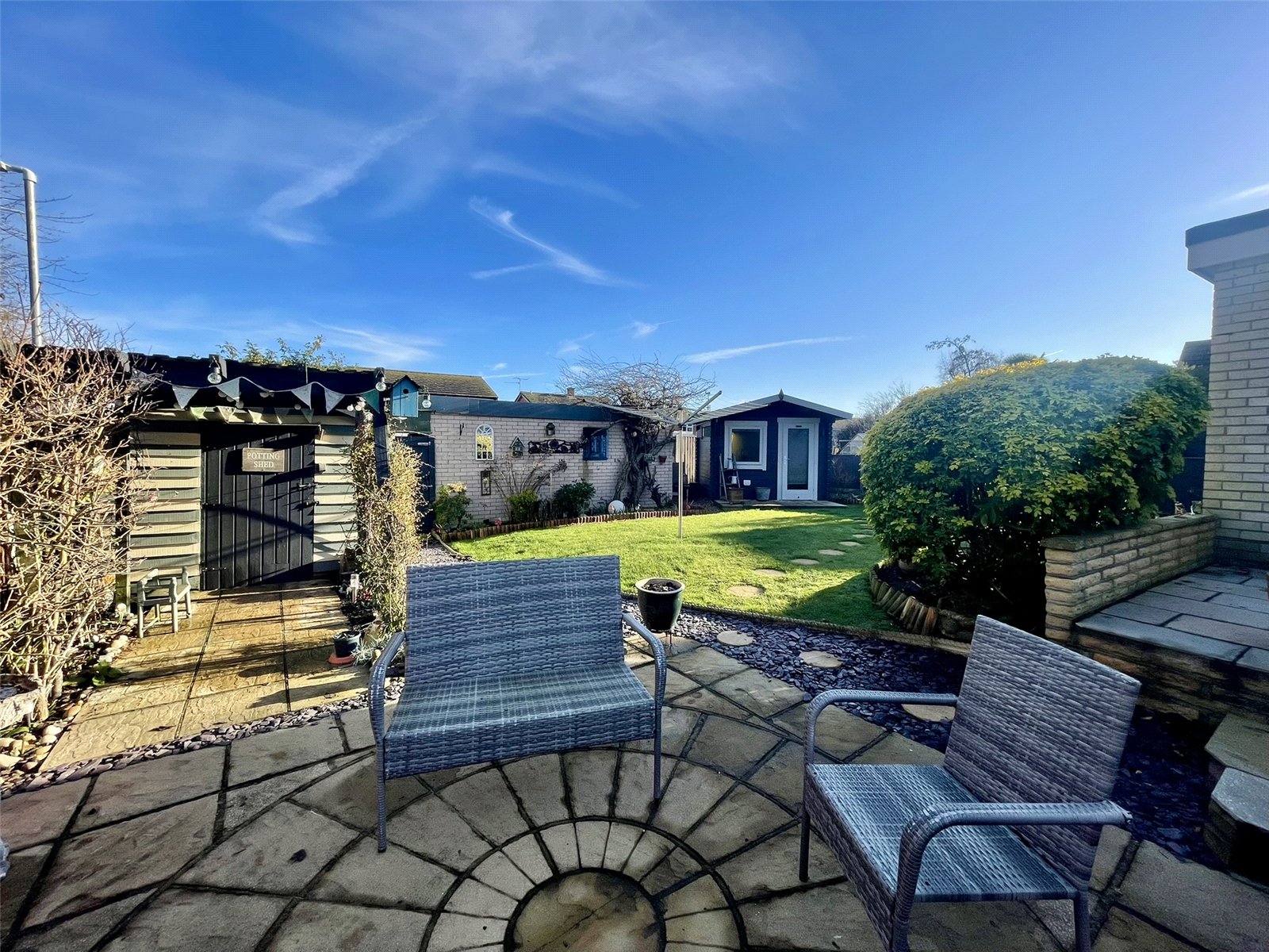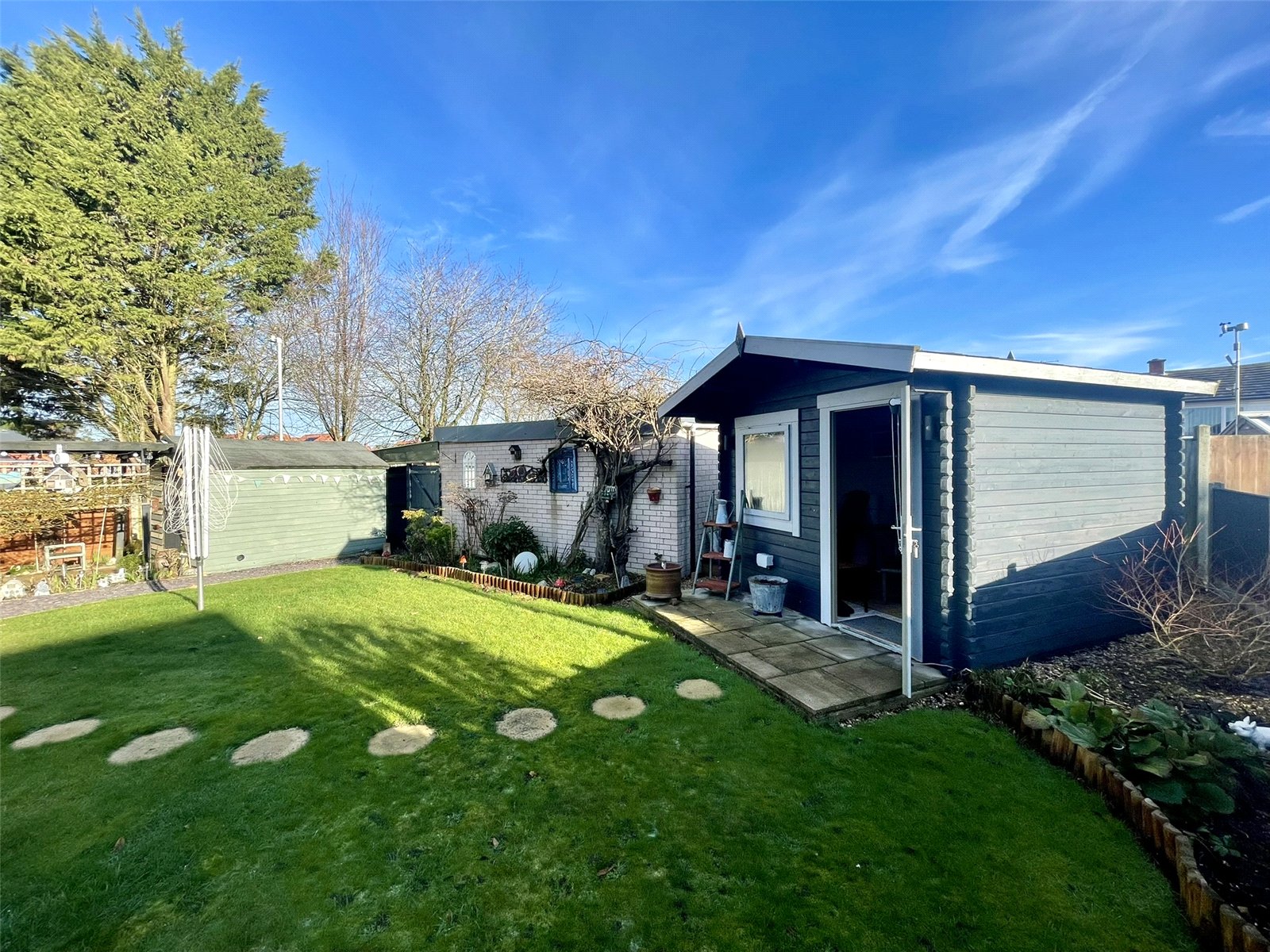 Built originally towards the end of the 1960's, this chalet style property has been cleverly extended and enhanced taking full advantage of the excellent corner plot. Additions to both the side and rear of the original property have created superb living space including a welcoming hallway, utility room, shower room and additional reception room. The day space is essentially open plan albeit with partial divides but makes for a friendly social space of good proportion. Upstairs, built-in wardrobes serve both of the principal bedrooms with the optional 3rd bedroom (downstairs) currently being used as a Study. Windows are double glazed throughout along with gas fired radiator heating having replaced the original oil system and boiler arrangement. It is also important to note the corner plot, unlike the majority of neighbouring properties, allows for a GARAGE & CAR PORT set to the bottom of the garden and accessed direct from the road. A gate leads directly into the garden.