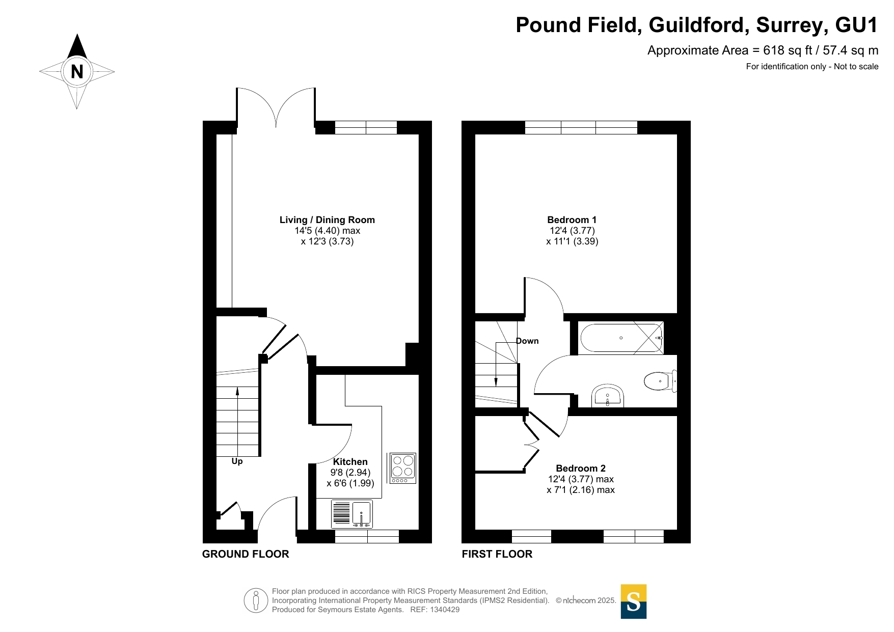 The home provides a well-planned layout with a bright living and dining room that opens onto the rear garden through double doors, creating a natural connection between indoor and outdoor spaces. The kitchen is separate and fitted with a range of cupboards, work surfaces, and integrated appliances, making it both practical and functional.Upstairs, bedroom one is a double, while bedroom two is a generous single that could also work well as a study or nursery. The bathroom is modern in style, fitted with a white suite including a bath with overhead shower, WC, and wash basin. Outside, the rear garden is enclosed and paved for easy maintenance, while at the front there is a small garden area.This home would suit first-time buyers, downsizers, or investors looking for a conveniently located house in Guildford, close to local amenities, transport links, and green spaces.