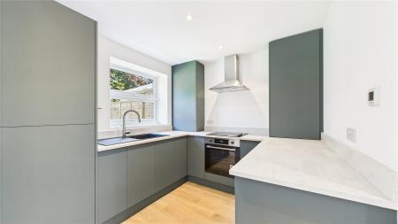 The open-plan kitchen is the heart of this home, benefiting from a range of eye and base-level cupboards, fitted appliances, and access into the rear garden.