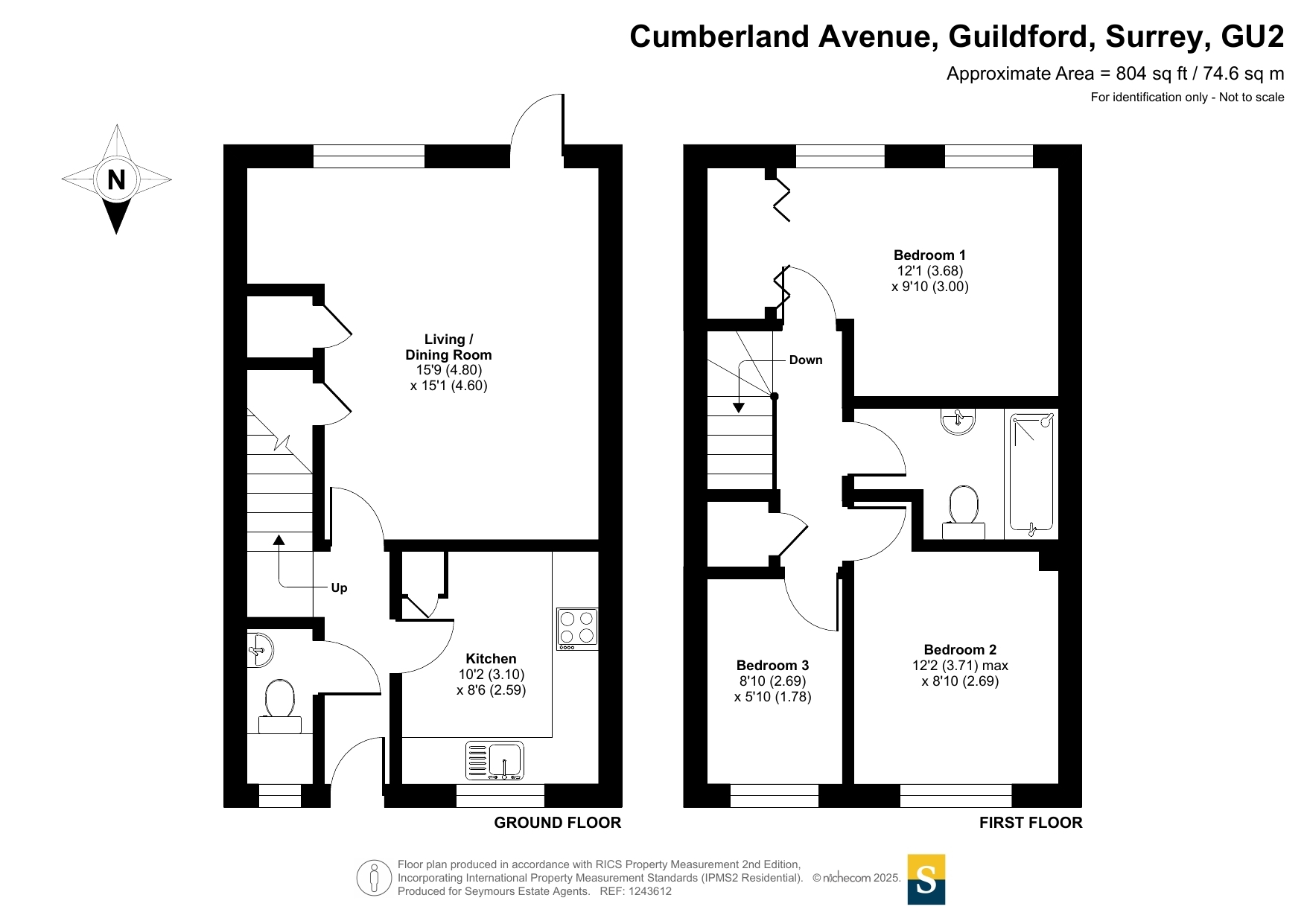 This three-bedroom terraced house is offered to the market with no onward chain and presents an excellent opportunity for buyers looking to update and modernize. The ground floor features a bright and spacious lounge with patio doors leading out to the garden, a fitted kitchen, and a convenient cloakroom.Upstairs, the first floor comprises three generous bedrooms and a family bathroom. The property benefits from a garden that is mostly laid to lawn with a patio area, providing a great space for outdoor enjoyment.The home is set within a residential area particularly popular with families. Within a few hundred meters, you'll find two local shops and access onto Whitmoor Common. The property is within catchment of good local schools. Guildford town centre is approximately 1.7 miles away. Cumberland Avenue is served by buses into town every 15 minutes. Access to the A3 is particularly easy from this side of Guildford.