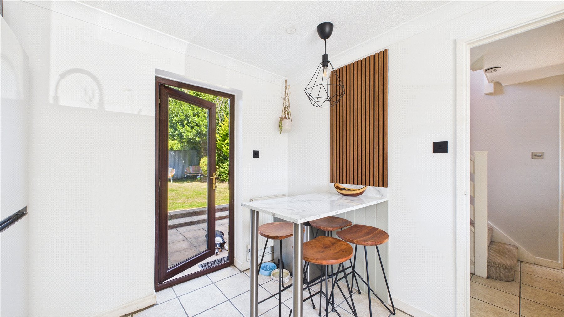 The recently re-fitted kitchen is a standout feature, with a range of eye and base level storage units, and breakfast bar, the perfect spot to catch up on the day's activities.