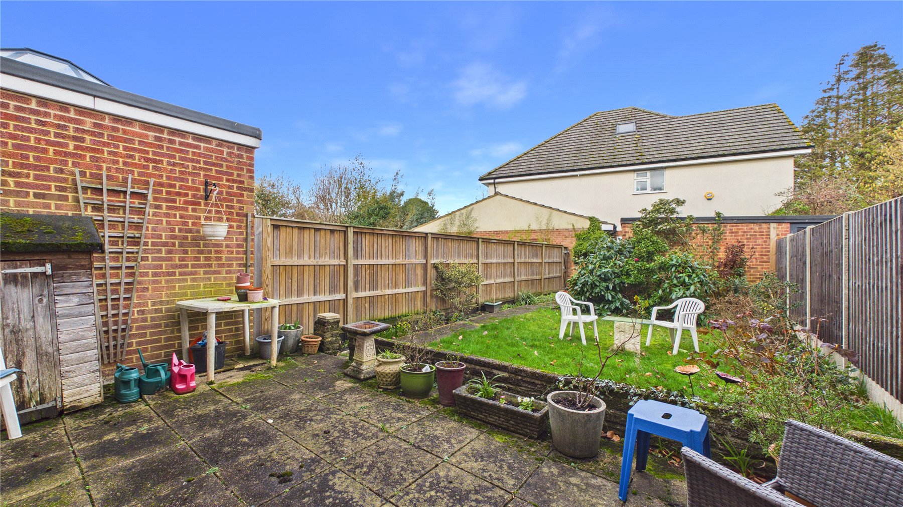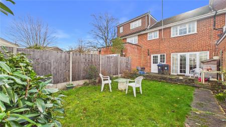 Further benefits include a private rear garden and a garage in a nearby block.The ground floor accommodation comprises a spacious living/dining room stretching the full depth of the property, providing clearly defined sitting and dining areas with a pleasant outlook to the front and French doors opening onto the rear garden. The kitchen is positioned to the rear and, whilst requiring basic modernisation, offers ample storage and worktop space with scope to reconfigure or extend (STPP). A downstairs cloakroom completes the ground floor.Upstairs, there are three bedrooms, two of which are comfortable doubles with fitted storage, and a third single bedroom ideal as a child's room or home office. The family bathroom serves all three rooms and offers further potential for updating.Externally, the rear garden is mainly laid to lawn with a small patio area, providing a private space to relax or entertain. To the front, the property enjoys an open aspect with pathway leading to the entrance. A garage in a nearby block provides additional storage or secure parking.Located within easy reach of Horsell village, well regarded local schools and Woking town centre with its mainline station offering fast and frequent services to London Waterloo, this property represents a superb opportunity for first-time buyers, investors or those seeking a home to modernise in a highly desirable location.