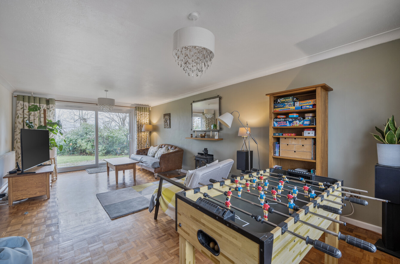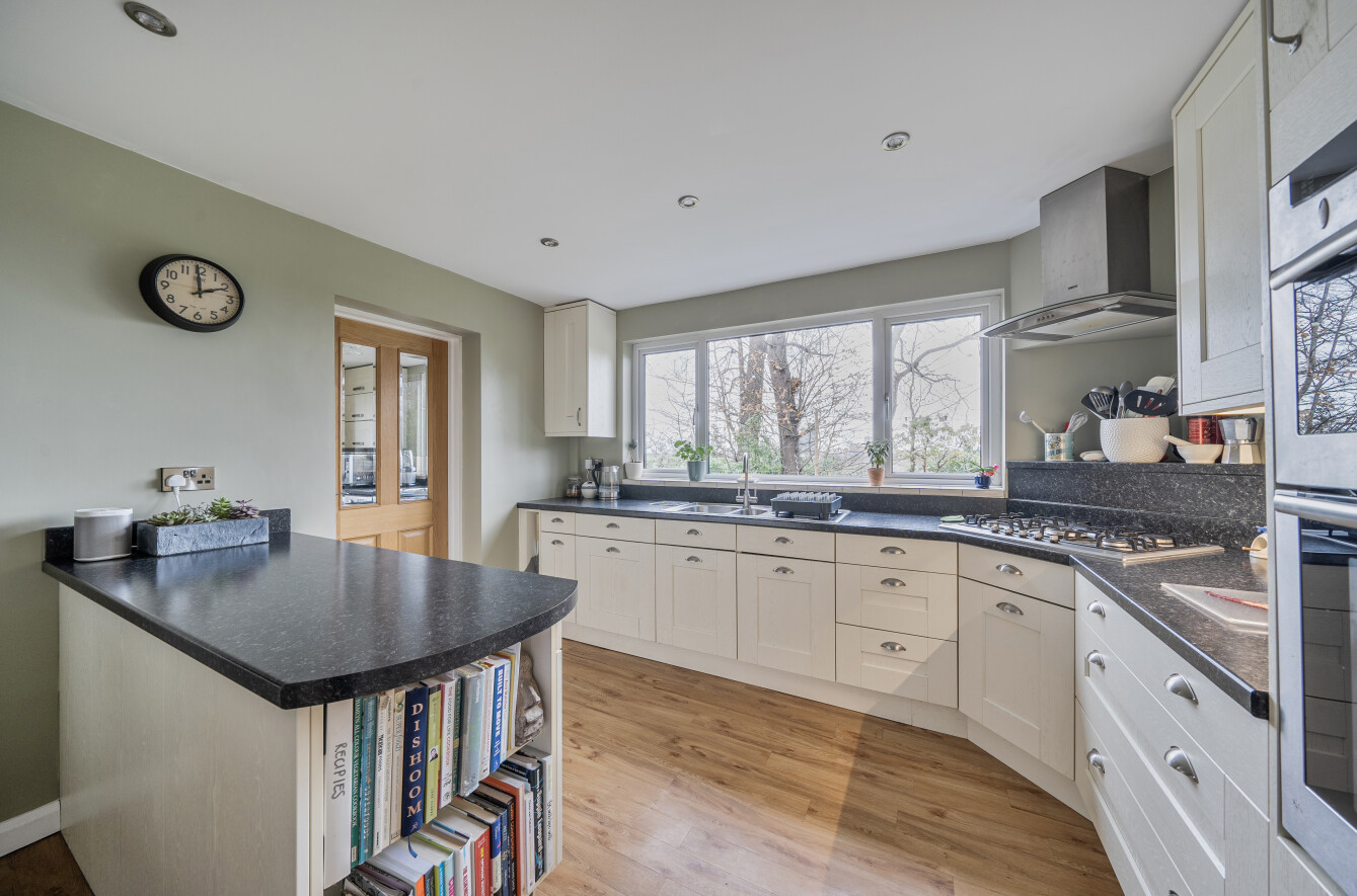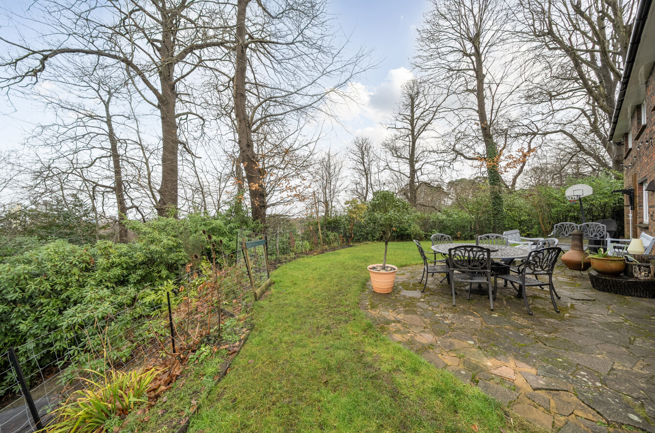 The wrap-around garden incorporates a lawn and patio area overlooked from the kitchen and which is ideal for entertaining. It feels wonderfully private with its woodland backdrop. For those who value outdoor living without relying on the car, the location truly excels.