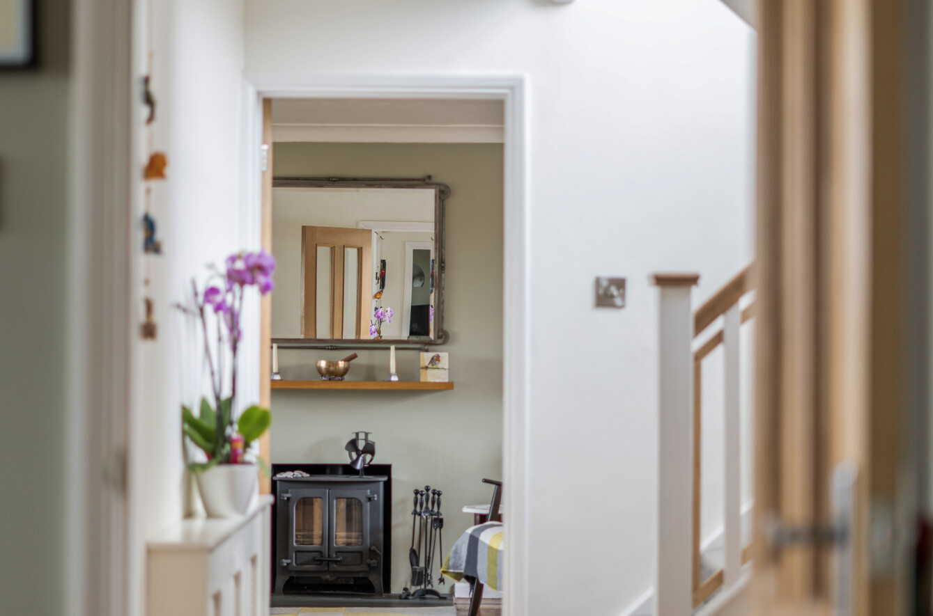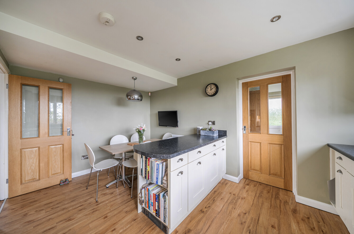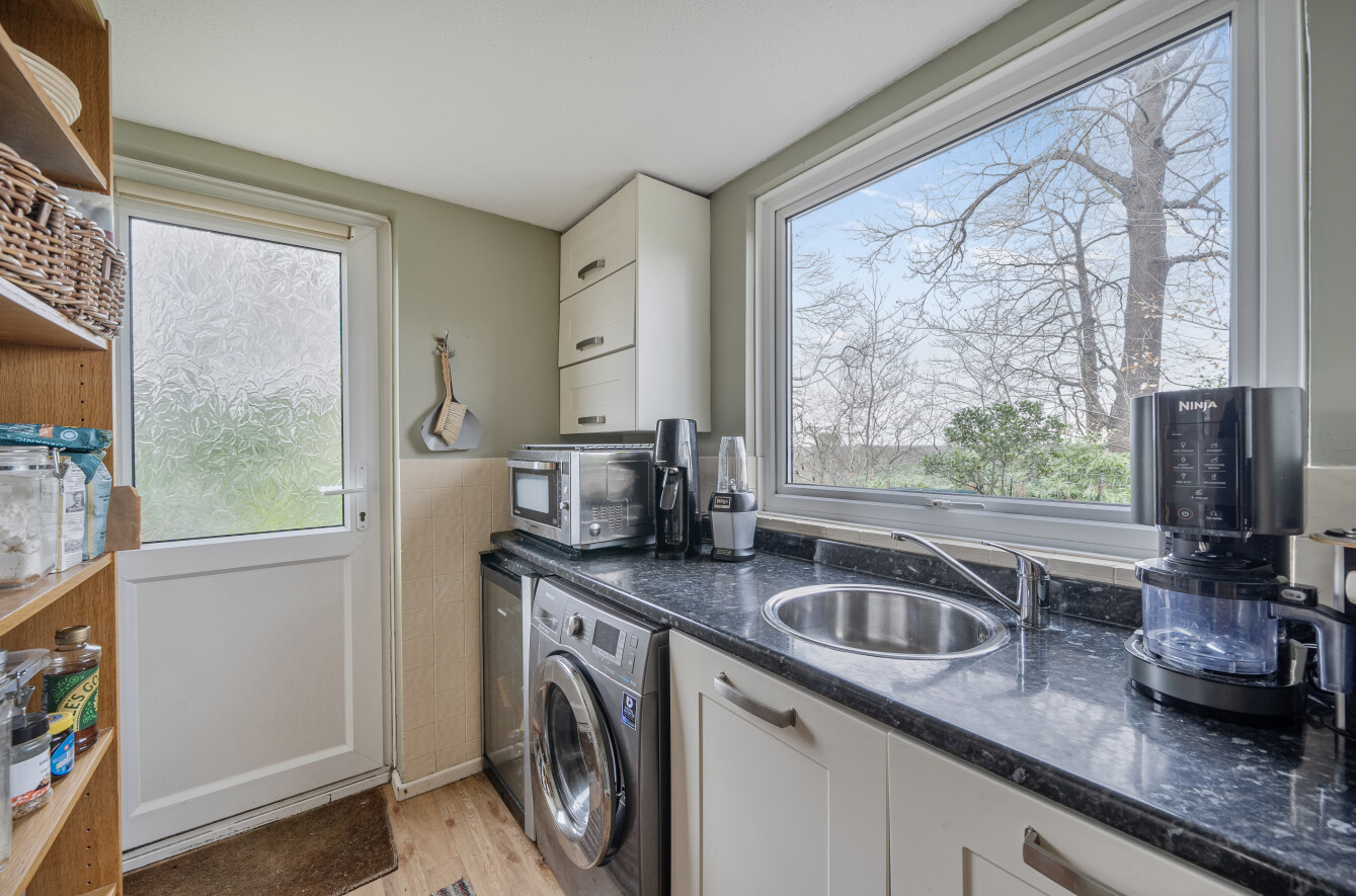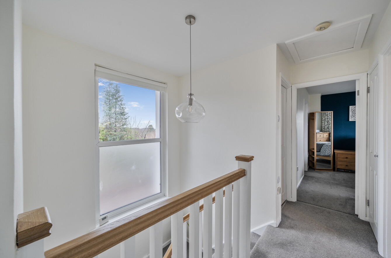 The wrap-around garden incorporates a lawn and patio area overlooked from the kitchen and which is ideal for entertaining. It feels wonderfully private with its woodland backdrop. For those who value outdoor living without relying on the car, the location truly excels.
