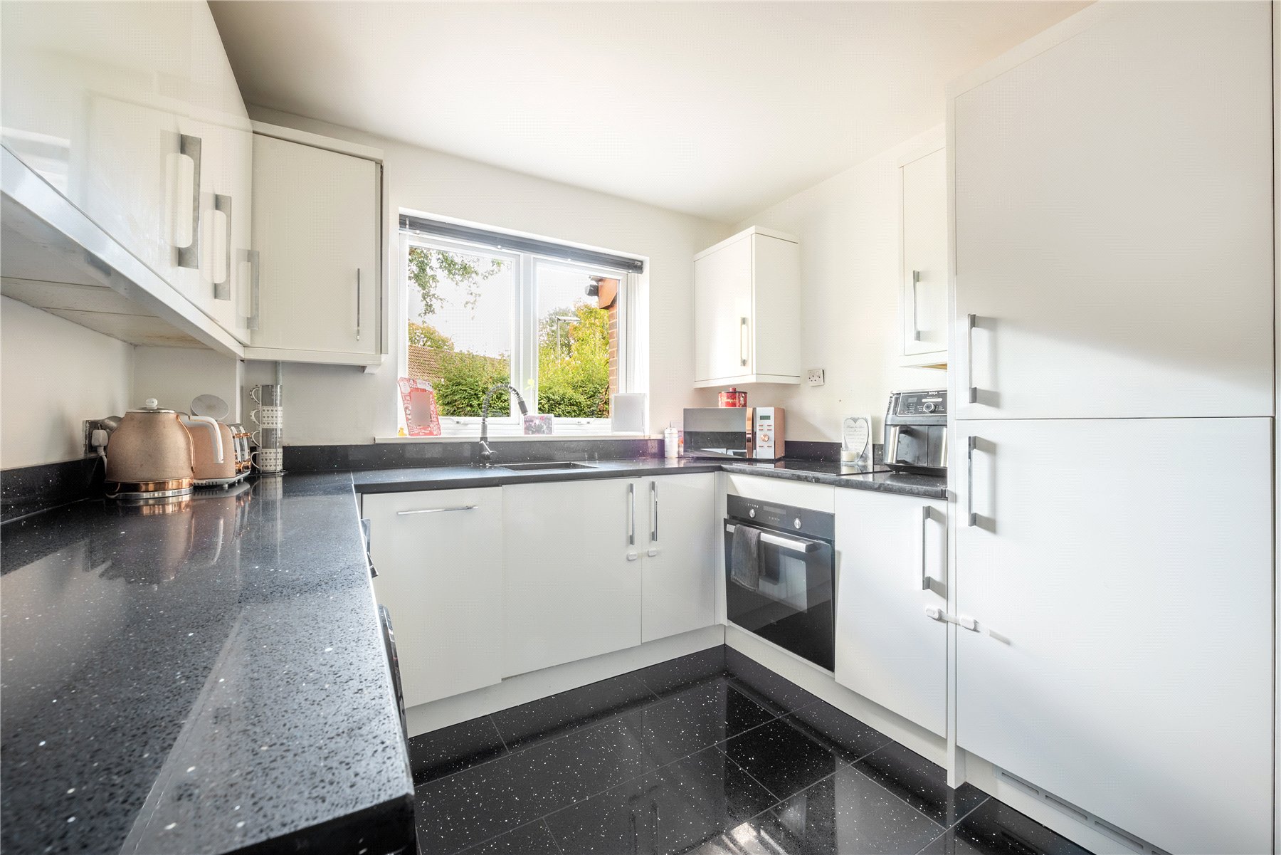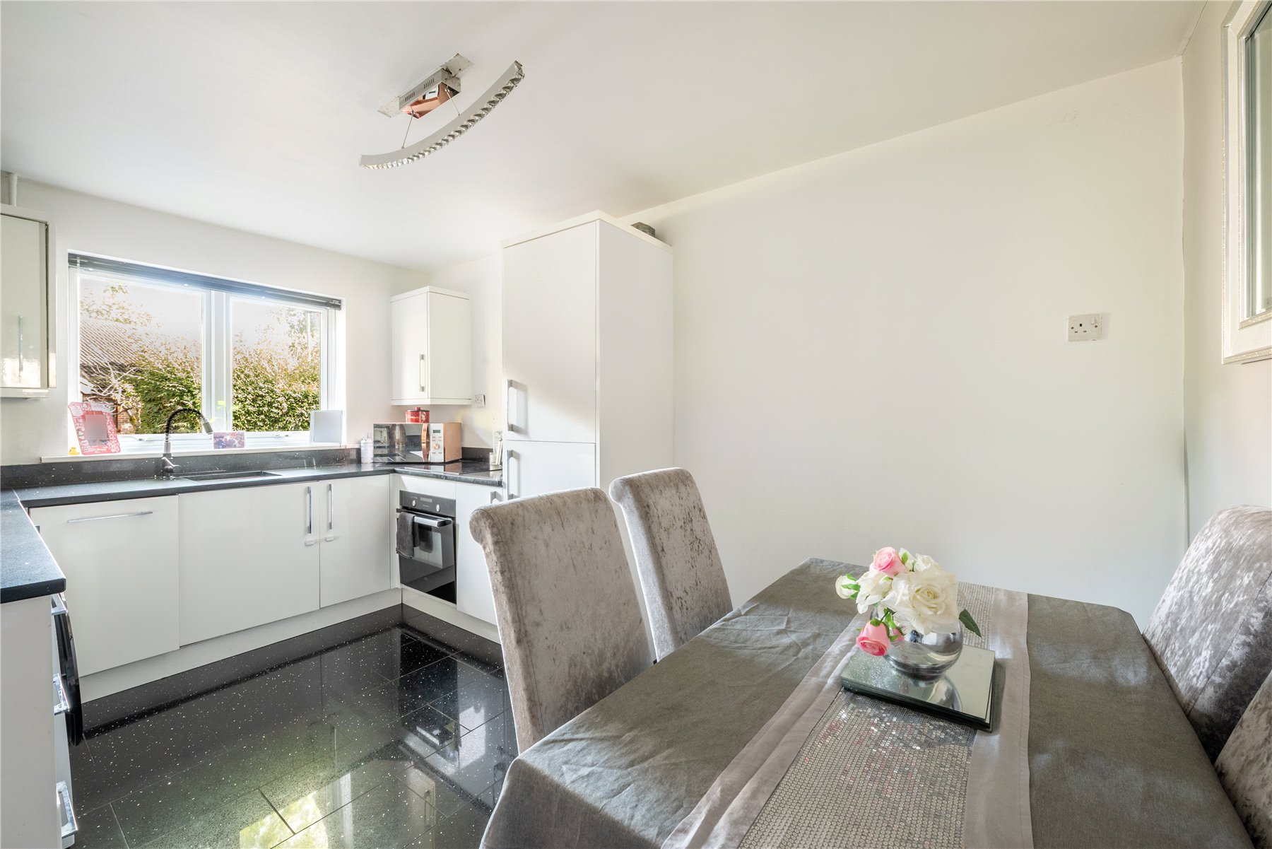 Step inside to discover a spacious kitchen/breakfast room, fitted with a range of base and eye level units topped with sleek black granite worktops, perfect for everyday dining and entertaining. The rear aspect lounge is bright and welcoming, with views over the private garden, creating a relaxing living space.
