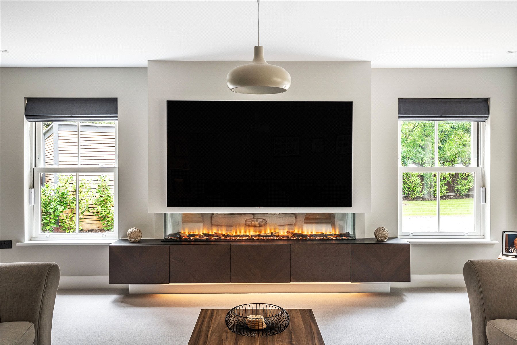 Behind the elegance of a double fronted facade Smart design features have been incorporated with creativity and imagination across a three storey layout. Mesh Wi-Fi, multi room audio, electric blinds, Smart lighting, CAT6 cabling, air conditioning, underfloor heating, CCTV and smart garden irrigation are just a handful of the many subtle features of an exceptionally designed interior.