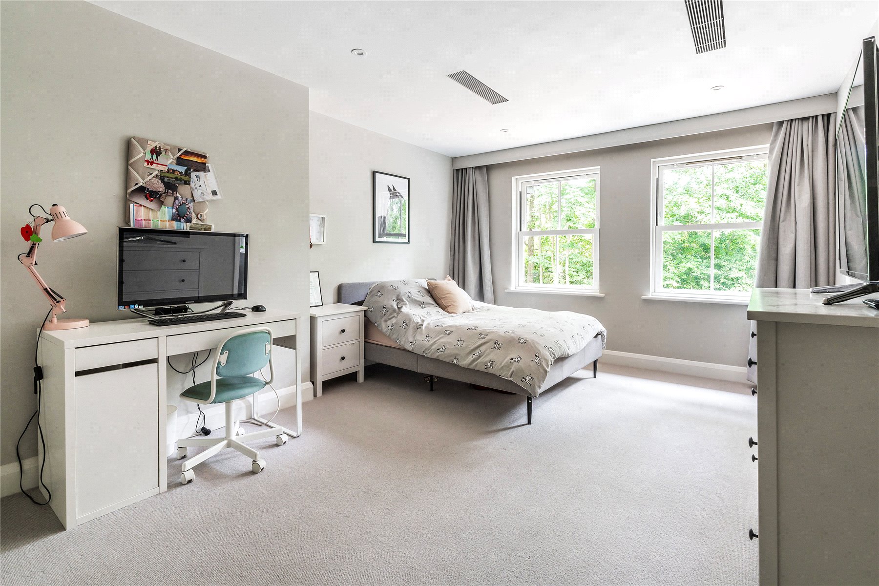 The second bedroom has a fitted walk-through wardrobe and an equally impressive Jack and Jill en suite with both a bath and walk-in shower, while the third has ample walk-in storage and an en suite bathroom. With access to an impressive degree of eaves storage two further double bedrooms sit on the top floor replicating the hugely generous dimensions that you've come to expect by now. Together they share an exemplary shower room that complements the design themes that flow throughout. Each of the bedrooms has the added benefit of air conditioning.