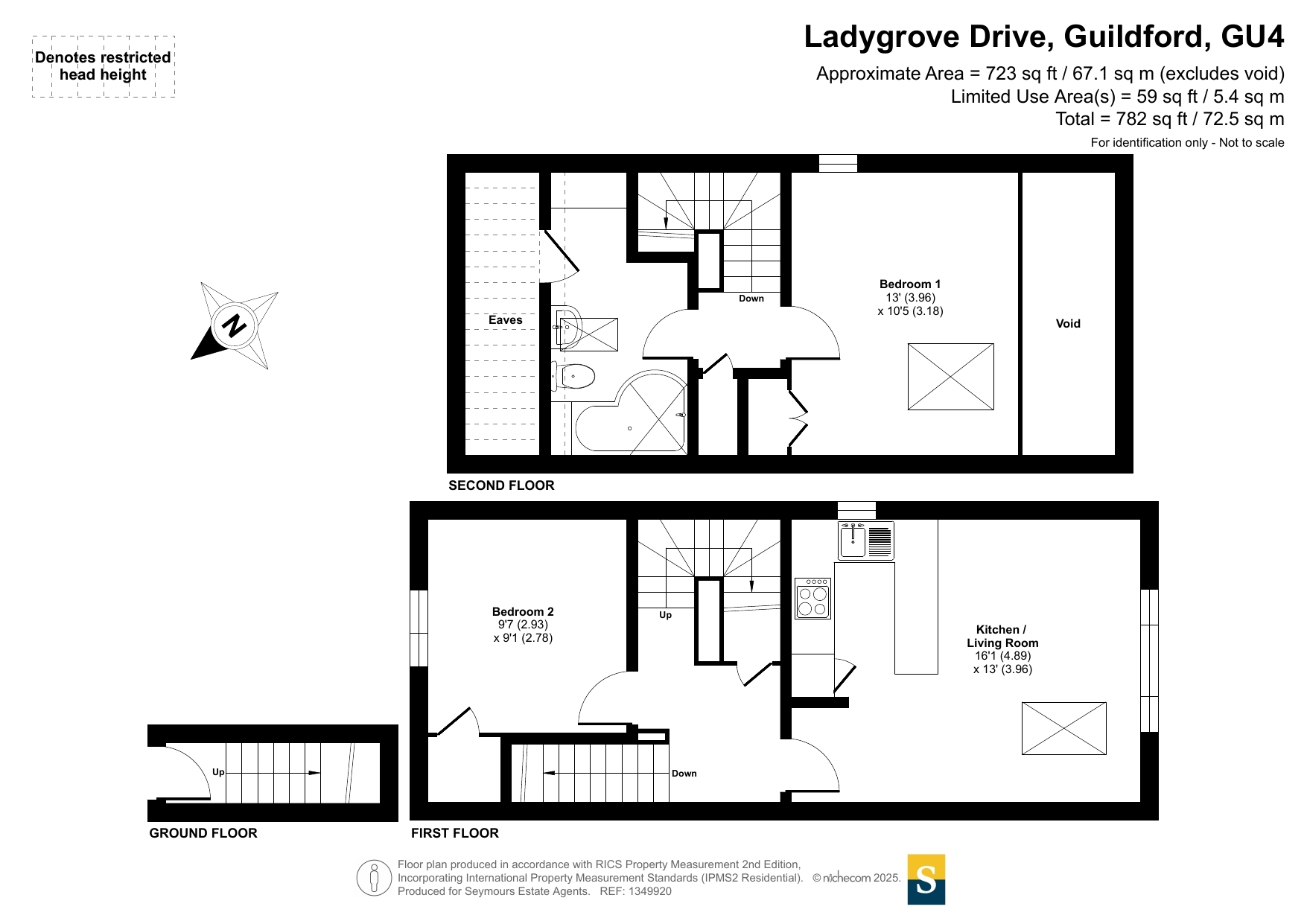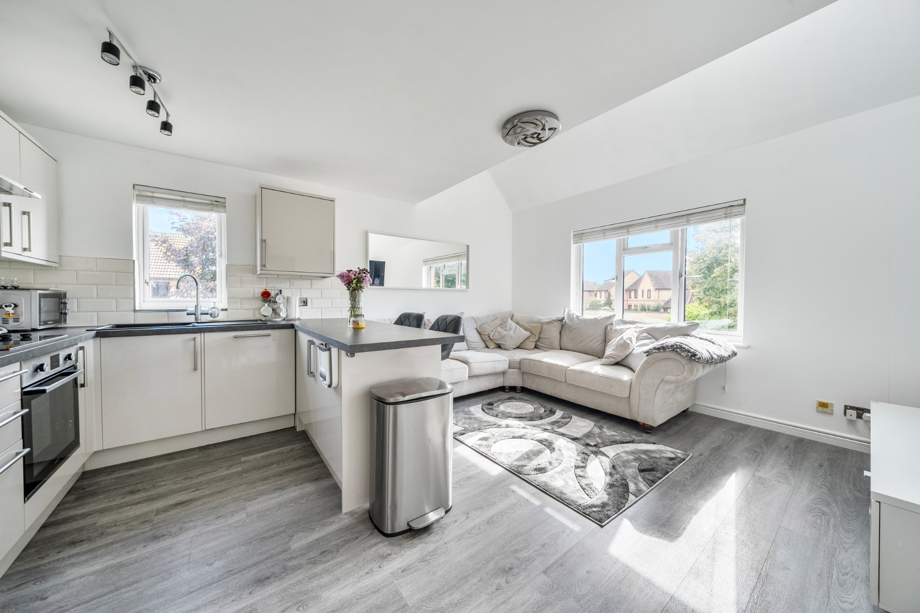 This delightful two-bedroom split-level maisonette is located in Burpham, within walking distance of local amenities and offering excellent transport links to both Guildford and London. The property has recently been redecorated with new carpets and flooring throughout, and is offered with the benefit of no onward chain, making it an ideal purchase for first-time buyers, downsizers, or investors alike.The first floor opens into a spacious and bright open-plan kitchen/living room. This contemporary space is finished to a high standard with sleek white cabinetry, contrasting black countertops, and a stylish white brick-style tiled splashback. A breakfast bar creates a natural divide within the room and offers a practical dining space. White walls and high ceilings add to the sense of light and space, while modern finishes complete the look. This floor also accommodates the second bedroom, a comfortable space decorated in calming grey tones and fitted with a soft carpet.On the upper floor, the principal bedroom enjoys a mezzanine-style layout, with views over the floor below. This generous room continues the theme of white walls paired with soft grey carpets, creating a fresh and welcoming atmosphere. The bathroom is finished with striking black, white, and grey tiling, complemented by large floor tiles and modern white fittings. It also offers space for utilities such as a washing machine and benefits from additional eaves storage.Overall, this beautifully presented home combines modern style with practical living, in a convenient and sought-after location.