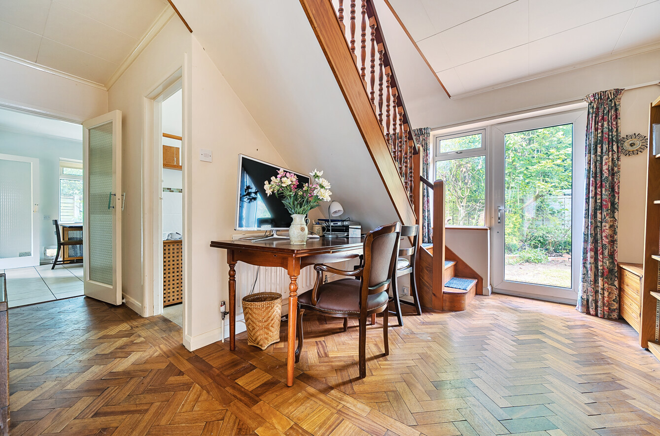 Double doors open from an enclosed entry porch into a wonderfully large central hallway where the rich tones of an exemplary parquet floor run beneath your feet and a fully glazed door to the rear instantly fills your gaze with the gardens outside. With an abundance of space to incorporate a desk/study area, the considerable dimensions unfold onto a large double aspect sitting room where the garden views continue and the herringbone patterns of the floor combine with a focal point fireplace to prompt a coveted measure of charm and character.