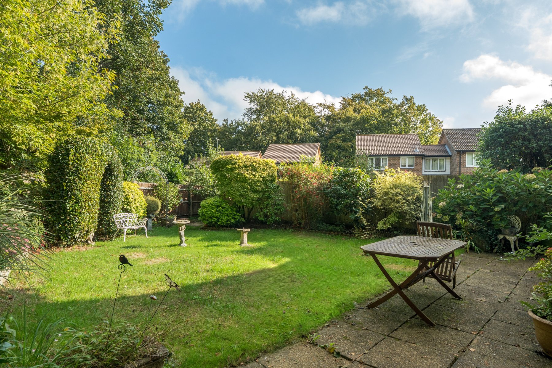 - Mature rear garden with lawn and patio seating area