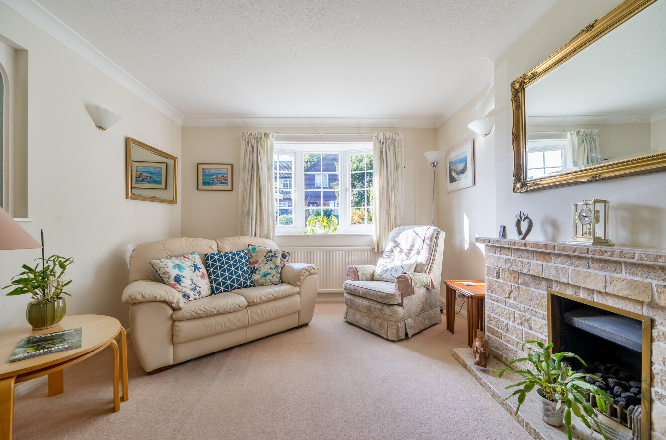 - Spacious living room with bay window and feature fireplace