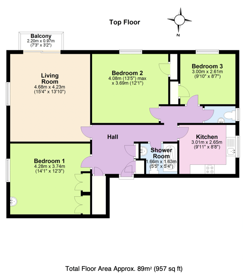Total Floor Area Approx. 89m2 (957 sq ft)