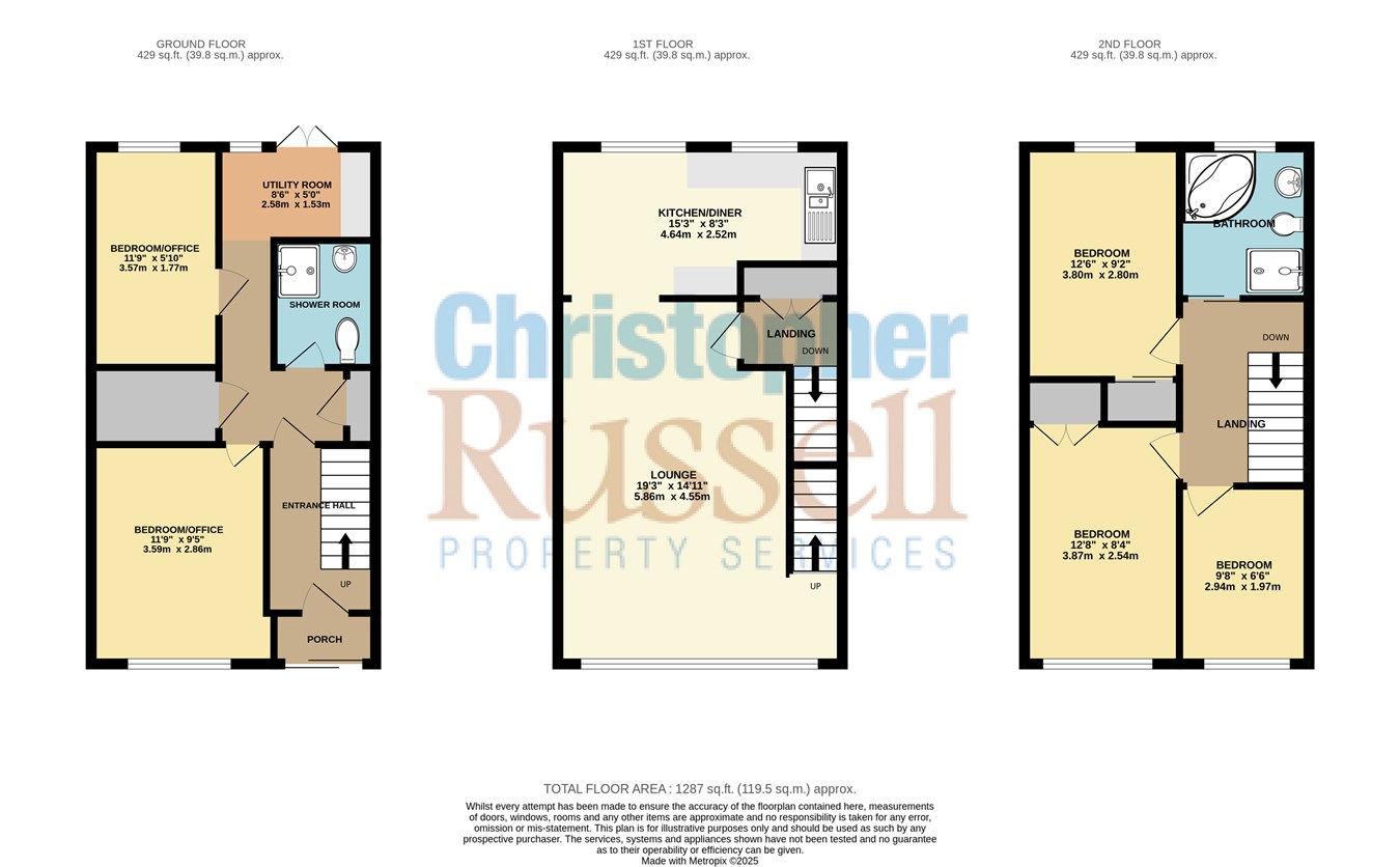 Set over three floors offering spacious versatile living accommodation that comprises on the ground floor two rooms that are currently used as bedrooms, utility room and shower room. The first floor comprises a large open planned lounge/diner which leads onto the kitchen/breakfast room and the second (top) comprises three bedrooms and a family bathroom.