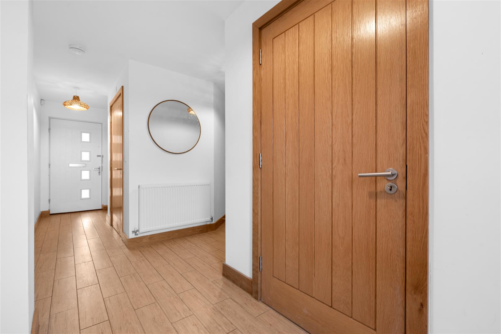 Hallway - 6.95 x 0.99 (22'9" x 3'2") - Expansive T-shaped hallway comprising tiled flooring, radiator, understairs storage cupboard and doors to bedroom one, bathroom, the integral garage & both the front & rear external doors.