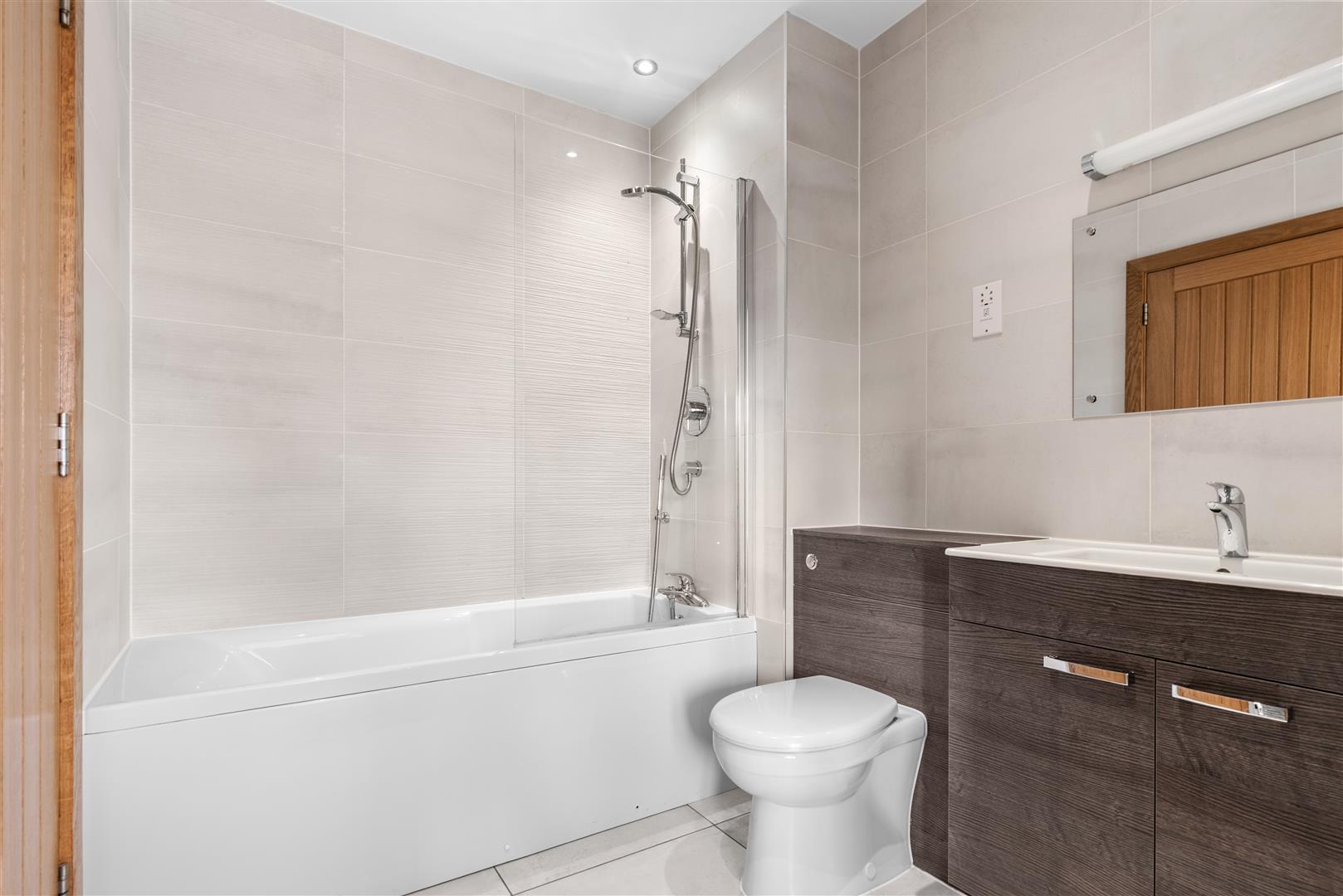 Bathroom Two - 2.27 x 2.02 (7'5" x 6'7") - Contemporary fully tiled bathroom with heated towel rail, shaving socket, shower over bath, sink & wc.