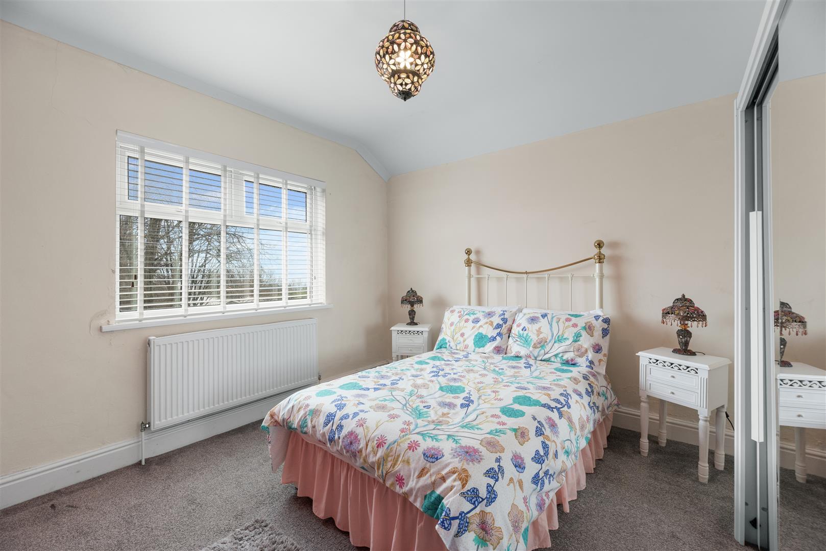 Bedroom Three - 3.81 x 3.69 (12'5" x 12'1") - Third bedroom with fitted carpet, radiator, pvcu windows & blinds and beautiful vintage cast iron fireplace.