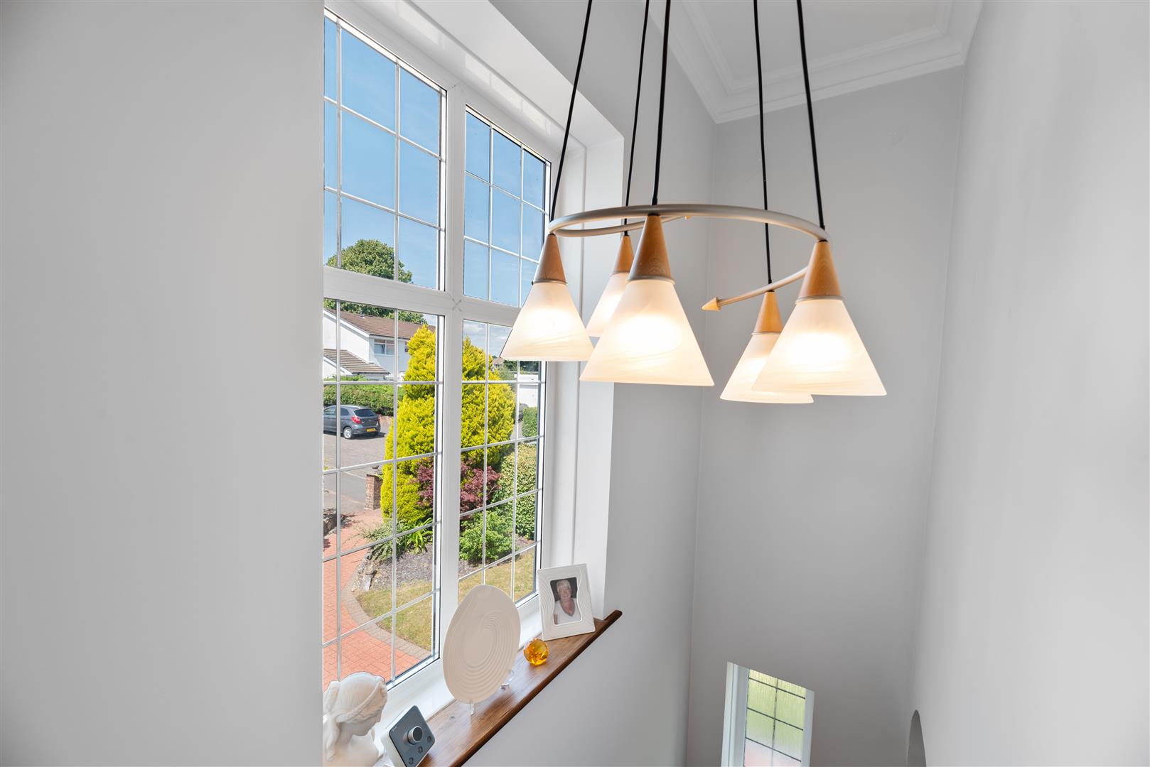 Landing - 6.82 x 3.98 widest (22'4" x 13'0" widest) - Landing space with fitted carpet, elegant pendant lighting over the staircase, oversize pvcu windows for natural light and understairs storage closets.