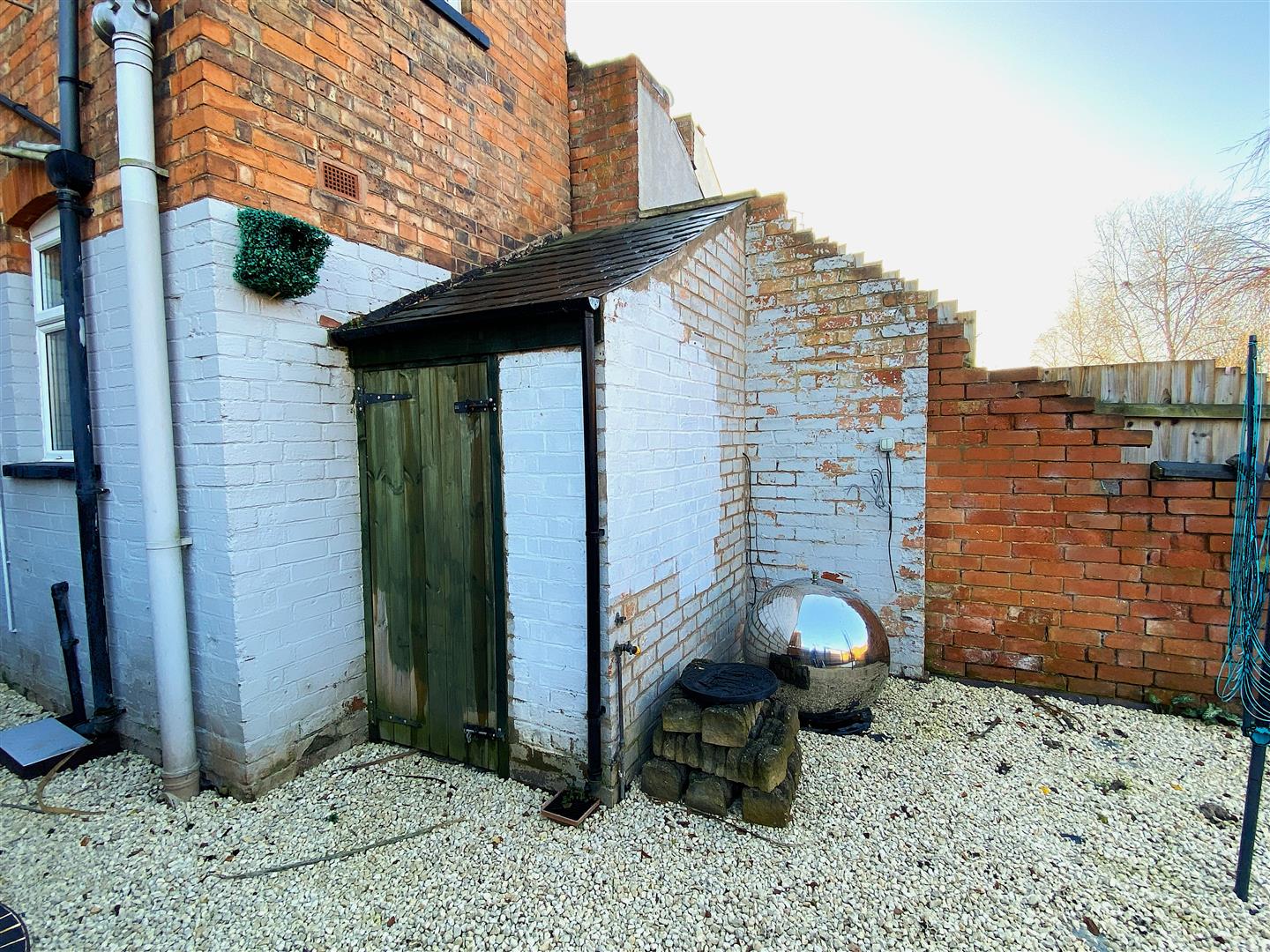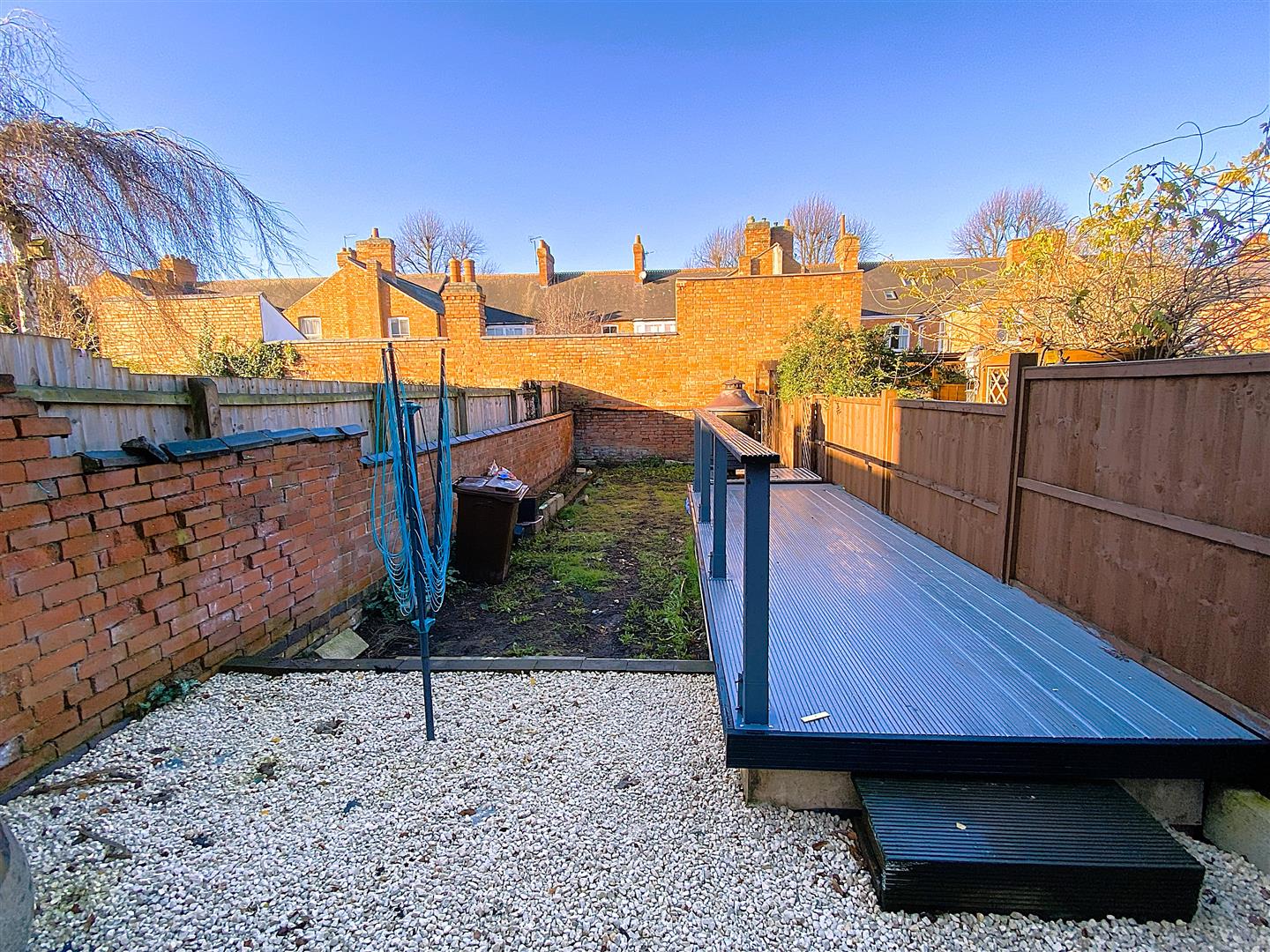 To the rear is a good size garden with gravelled and lawned areas, raised deck, brick store and walled boundaries.