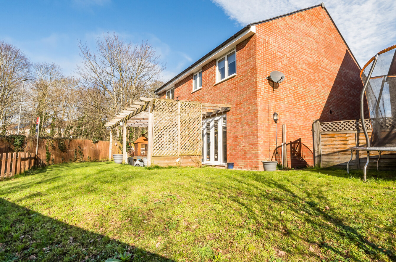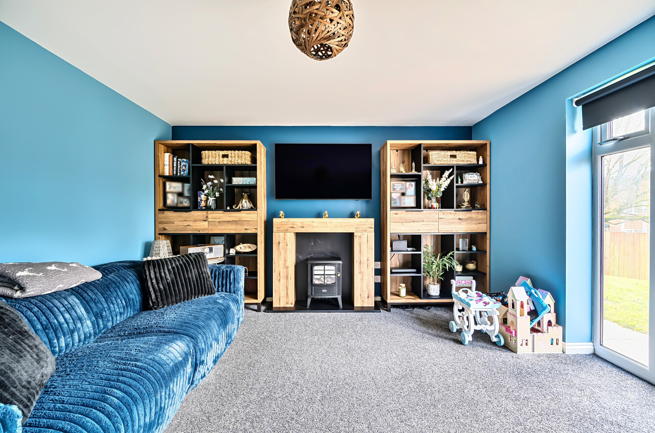 Outside, a generously sized driveway provides ample off-road parking, with a paved pathway leading to the front door beneath a storm porch. There is a single garage (the left-hand garage of a row of three) with up-and-over door, power and lighting. The front garden is laid to gravel for ease of maintenance. A timber gate provides access to the generous sized rear garden, which is fully enclosed by timber fencing and extends to both sides of the property. A paved patio with timber pergola over creates the perfect space for al fresco dining, leading onto a gently sloping lawn with a children's play area. There is also a further gravelled seating area, two sheds, a log store, exterior lighting and water tap.