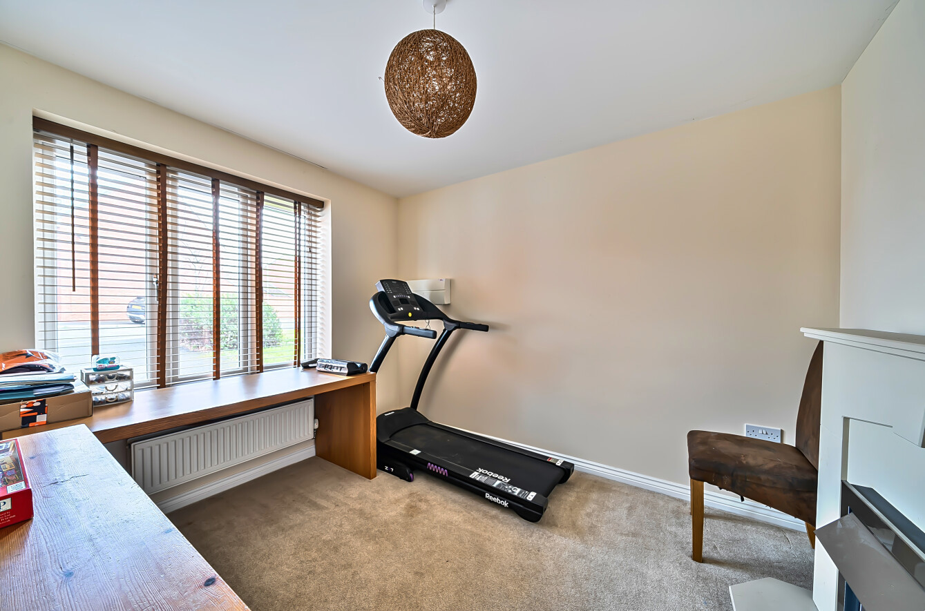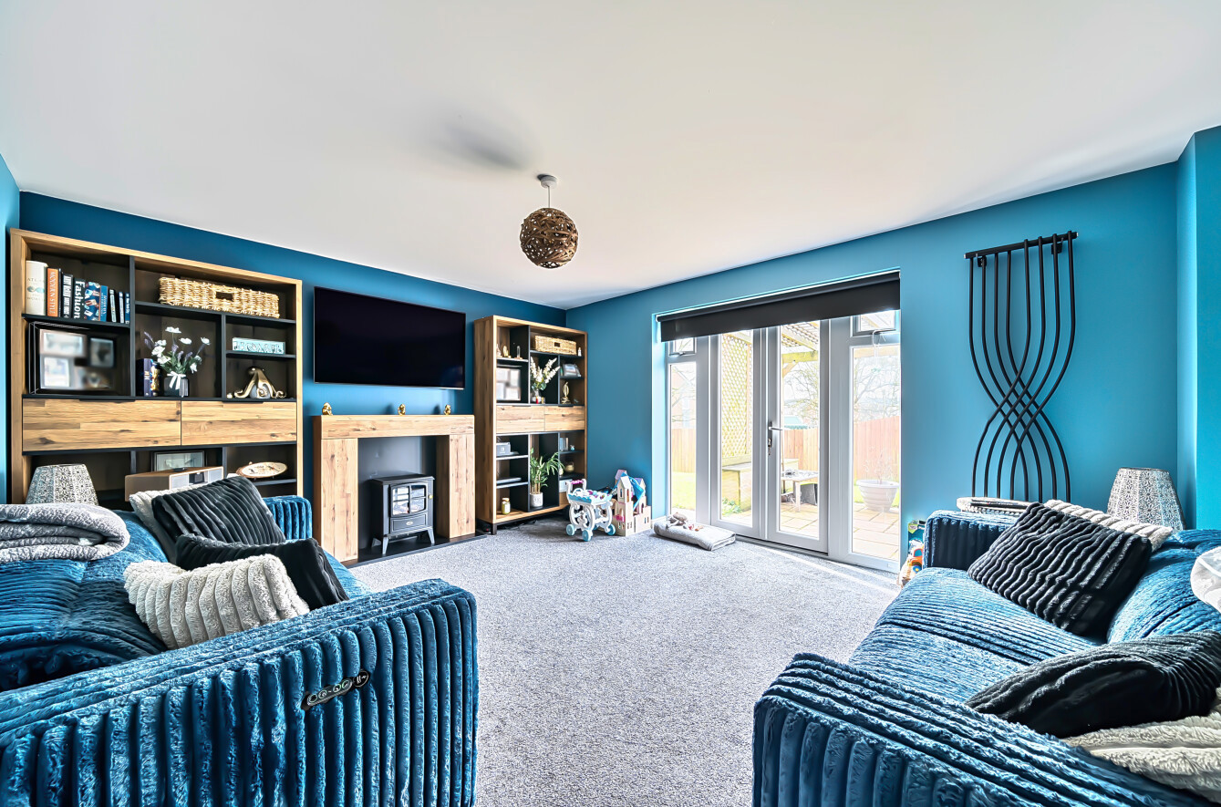 Step inside into a spacious entrance hall with a staircase rising to the first floor and a useful understairs storage cupboard. Situated at the rear of the property is a generous sized lounge with French doors opening onto the attractive rear garden. The focal point of this room is the fireplace with a timber mantel and surround, creating a cosy atmosphere in which to relax and unwind. The heart of this family home is the spacious dual-aspect open-plan kitchen/dining room, an ideal space for entertaining and family mealtimes. French doors open onto the rear garden, flooding the room with natural light. The modern fitted kitchen comprises a range of wall, base and drawer units with work surfaces over and an inset one-and-a-half bowl stainless steel sink. Integrated appliances include a gas hob with stainless steel splashback and cooker hood above, a built-in double electric oven, and a dishwasher, along with space for a freestanding fridge/freezer. Wall-mounted gas combination boiler. A useful utility room/cloakroom is has a stainless steel sink, work surface and base units, with space and plumbing for an automatic washing machine and tumble dryer. With a low-level WC and extractor fan. Completing the ground floor accommodation is a versatile study/playroom.
