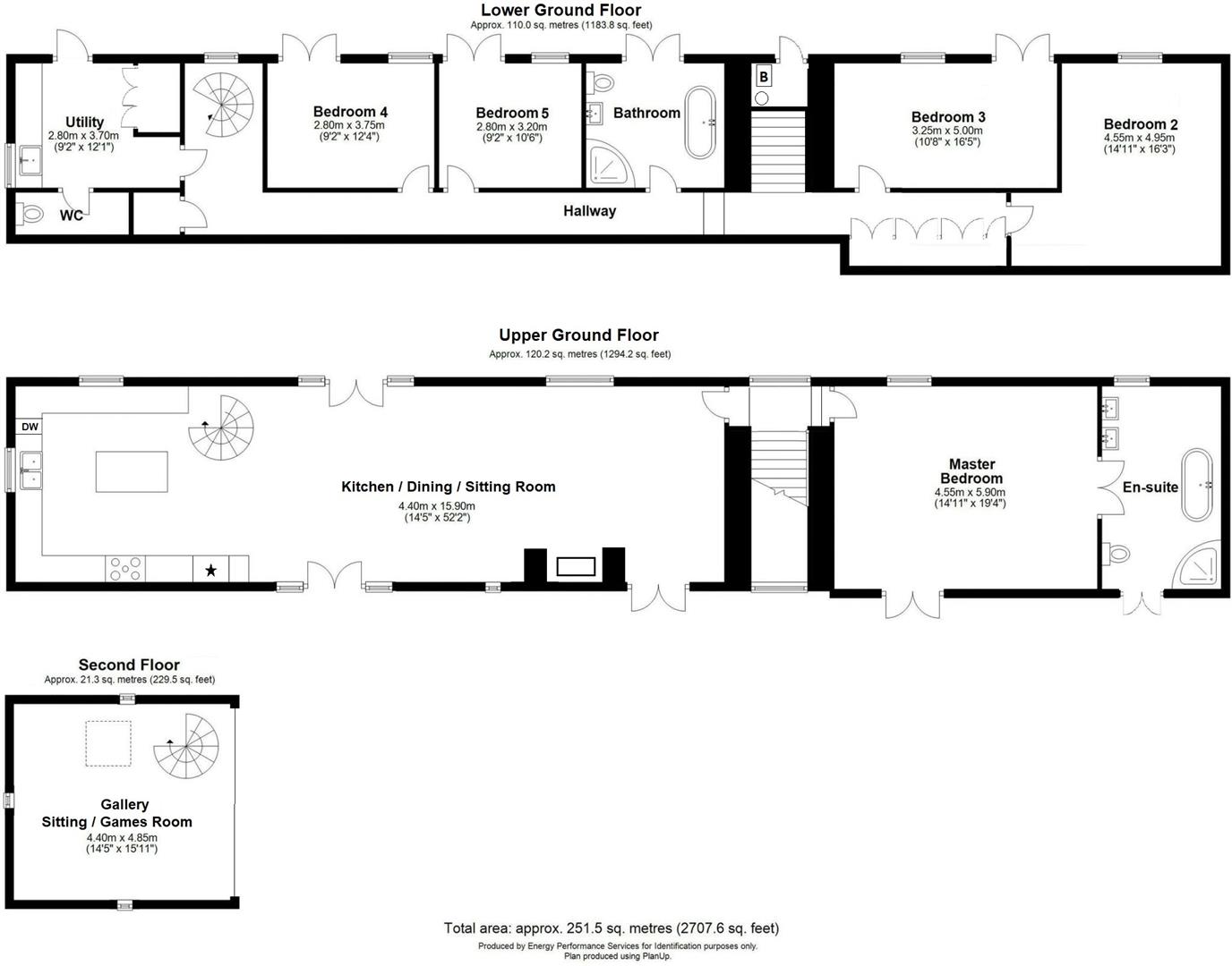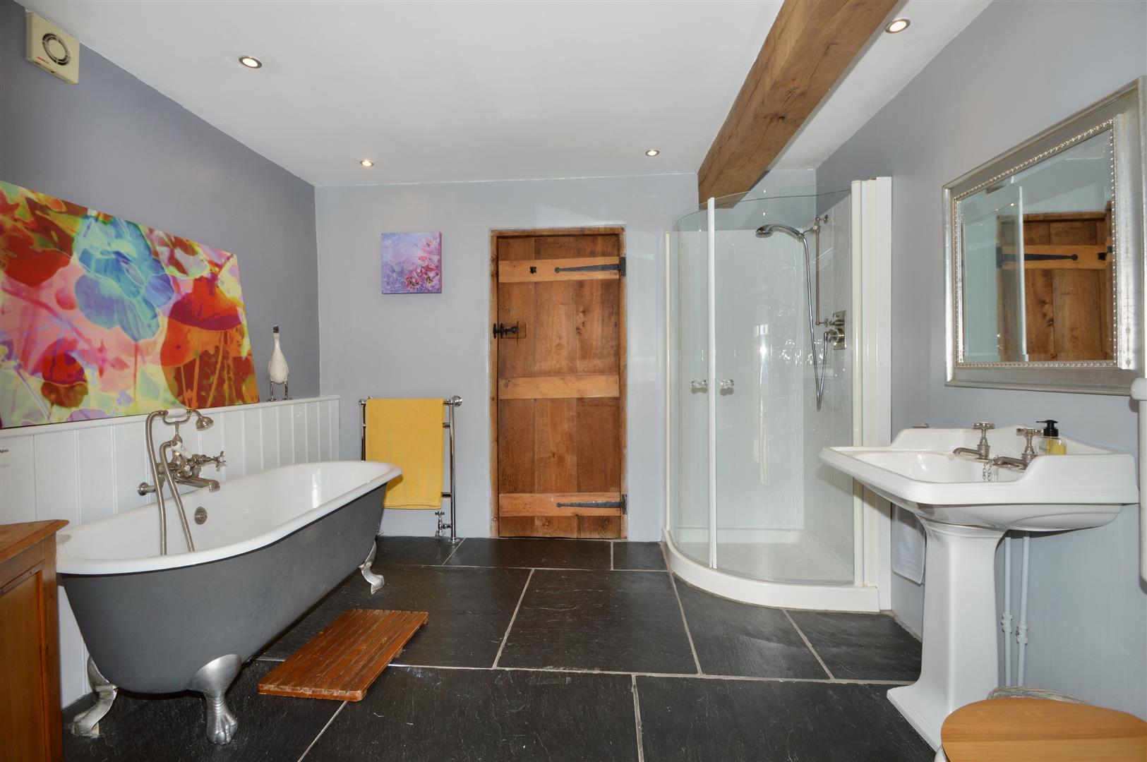 Ash Tree Barn - Ash Tree Barn is a very well presented, 5 bedroom barn conversion presented to a high standard and retains much of its original charm and character. The barn offers spacious and flexible family living, including a 50' kitchen, dining, sitting room, a luxurious master bedroom suite and 4 further double bedrooms. The outstanding accommodation benefits from timber framed double glazed windows and doors, oil fired central heating, and briefly comprises: French Doors opening to; Sitting / Dinng Rom; a dual aspect room, windows to the front and rear, French doors and a Juliette balcony at the rear, stone and granite open fireplace surround, granite hearth, wood burning stove, vaulted ceiling and exposed 'A' frame beams. Kitchen; Spiral staircase descends to the lower ground floor to the second floor galleried games / sitting room. Fitted wall and base units under black granite worksurfaces, Favel gas range cooker, stainless steel sink with food waste disposal unit, built in dishwasher and Samsung American fridge / freezer. Landing; staircase descending to the lower ground floor. Master Suite; a dual aspect room, windows to the front and rear; Vaulted ceiling with 'A' frame beams, glass doors open to the En suite; a dual aspect with windows to front and rear, tiled floor, double ended bath, corner shower, twin wash hand basins, w/c, exposed beams. On the second floor; Galleried Games / Sitting Room; Exposed 'A' frame beams, Velux window to the rear. On the Lower Ground Floor; Rear Entrance / Boot Room Utility; Slate tiled floor, fitted wall and base units under black leathered slate worktop, Butler's sink, exposed timbers, fitted airing cupboard and storage. Cloakroom; Slate tiled floor and w/c. Inner Hall; Slate tiled floor, window to the rear, spiral staircase to the upper ground floor, built in cupboard, Hallway; Slate tiled floor, 4 fitted storage and wardrobe cupboards, Bedroom 4; Exposed ceiling beams and lintels, windows and French Door to the rear, wood laminate flooring. Bedroom 5; Window and French Doors to the rear, wood laminate flooring. Family Bathroom; Slate tiled floor, French doors to the rear, freestanding double ended bath, corner shower, wash hand basin, w/c, heated towel rail. In the hallway. Bedroom 3; Slate tiled floor, window and French Doors to the rear. Bedroom 2; Slate tiled floor and window the rear.