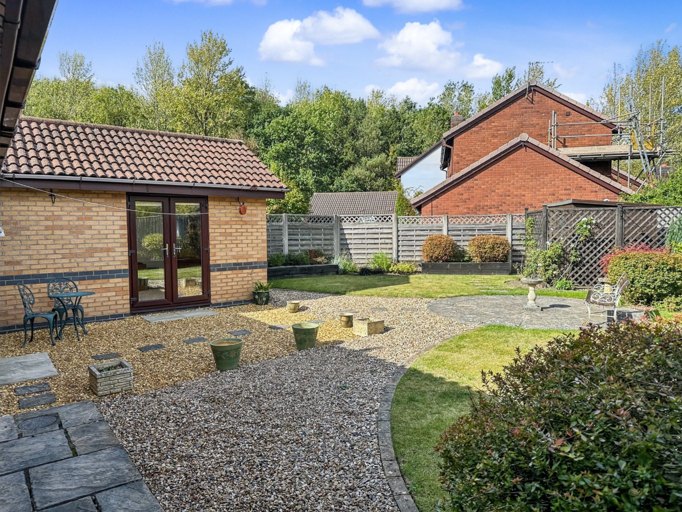 Externally, the property truly shines with its beautifully landscaped flat gardens. These outdoor spaces have been meticulously maintained and designed to offer a tranquil retreat, perfect for outdoor dining, gardening, or simply enjoying the fresh air. The flat nature of the gardens makes them easily accessible and enjoyable for all ages. The generous plot size not only accommodates these lovely gardens but also provides extensive driveway parking, leading to an integral garage/storage space.