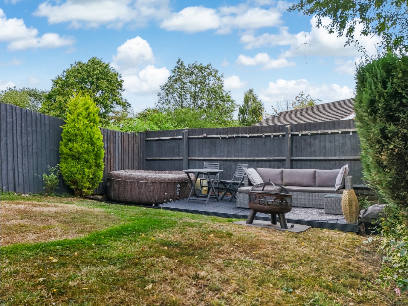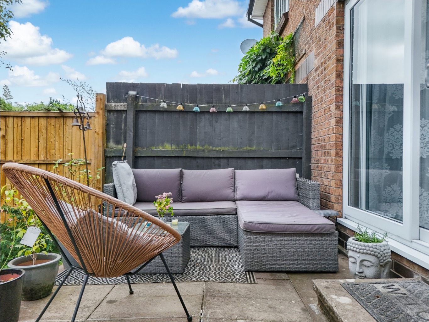 One of the standout features of this lovely home is the seamless connection between the indoor and outdoor spaces. French doors from the reception room open directly onto the private, lawned garden. This provides an idyllic setting for al fresco dining, summer barbecues, or simply enjoying a quiet moment outdoors.