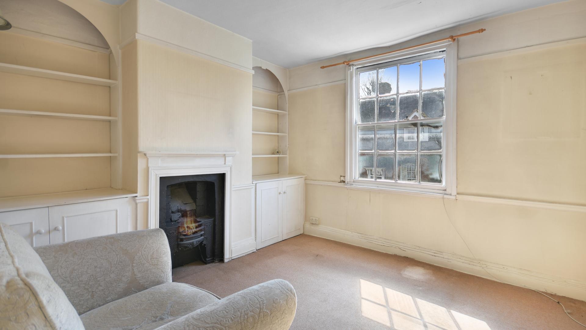 An attached Grade II listed Georgian townhouse, now offering scope to refurbish, a short distance from the tree lined High St. Sitting room with open fire, kitchen/dining room, 3 bedrooms arranged over 2 floors and spacious bathroom. Courtyard garden with useful brick store. Chain free.