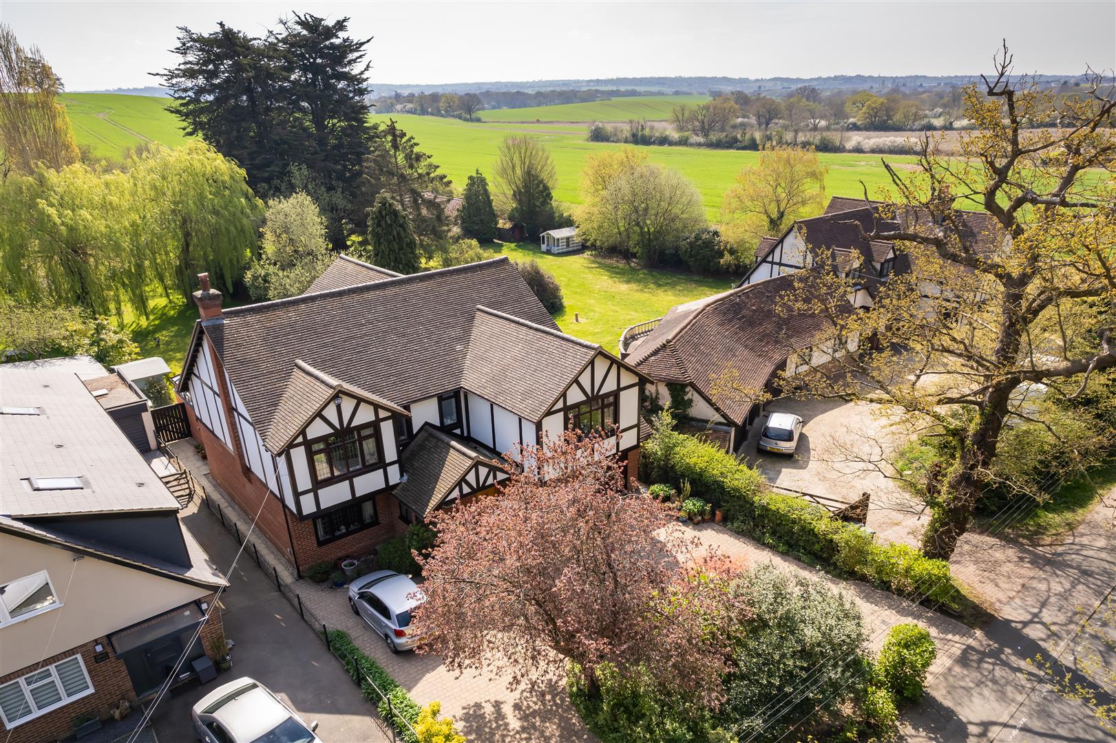 Nestled in the picturesque village of Theydon Bois, this stunning Mock Tudor style detached residence on Loughton Lane offers an exceptional living experience surrounded by serene open fields. Spanning an impressive 3,182 square feet, this home boasts a wealth of space and comfort.